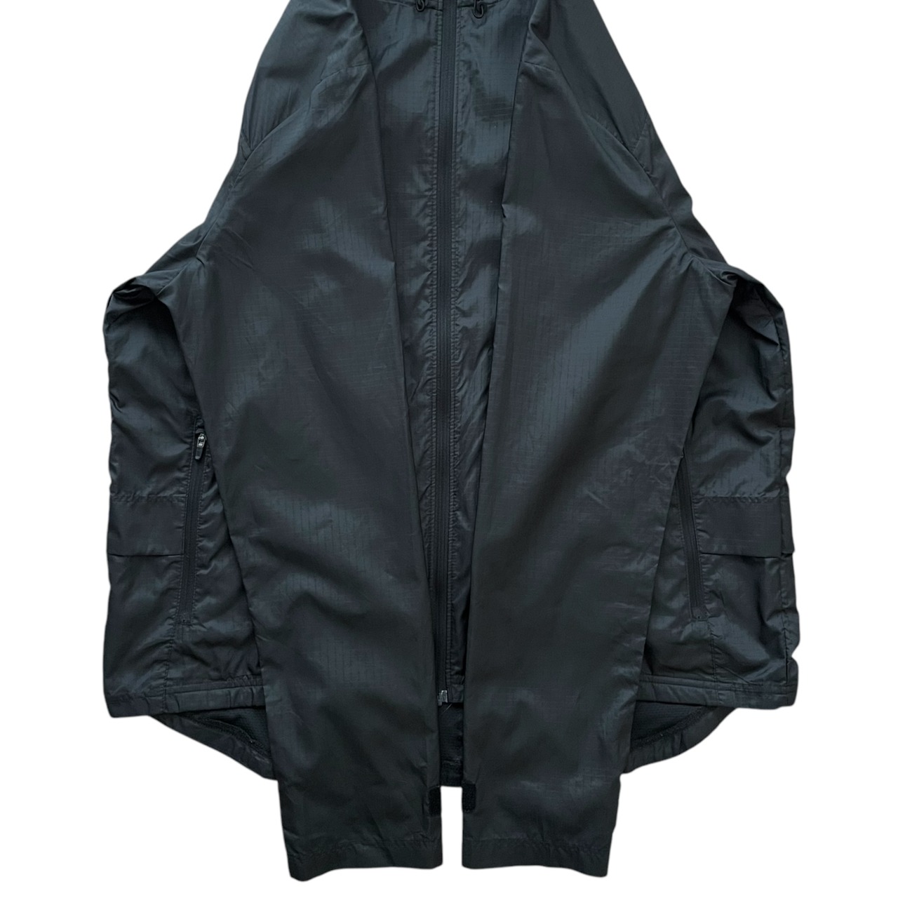 中にシャツ、ニット、スウェット、パーカーなどが着用出来るサイズ感で、首周りも余裕があります