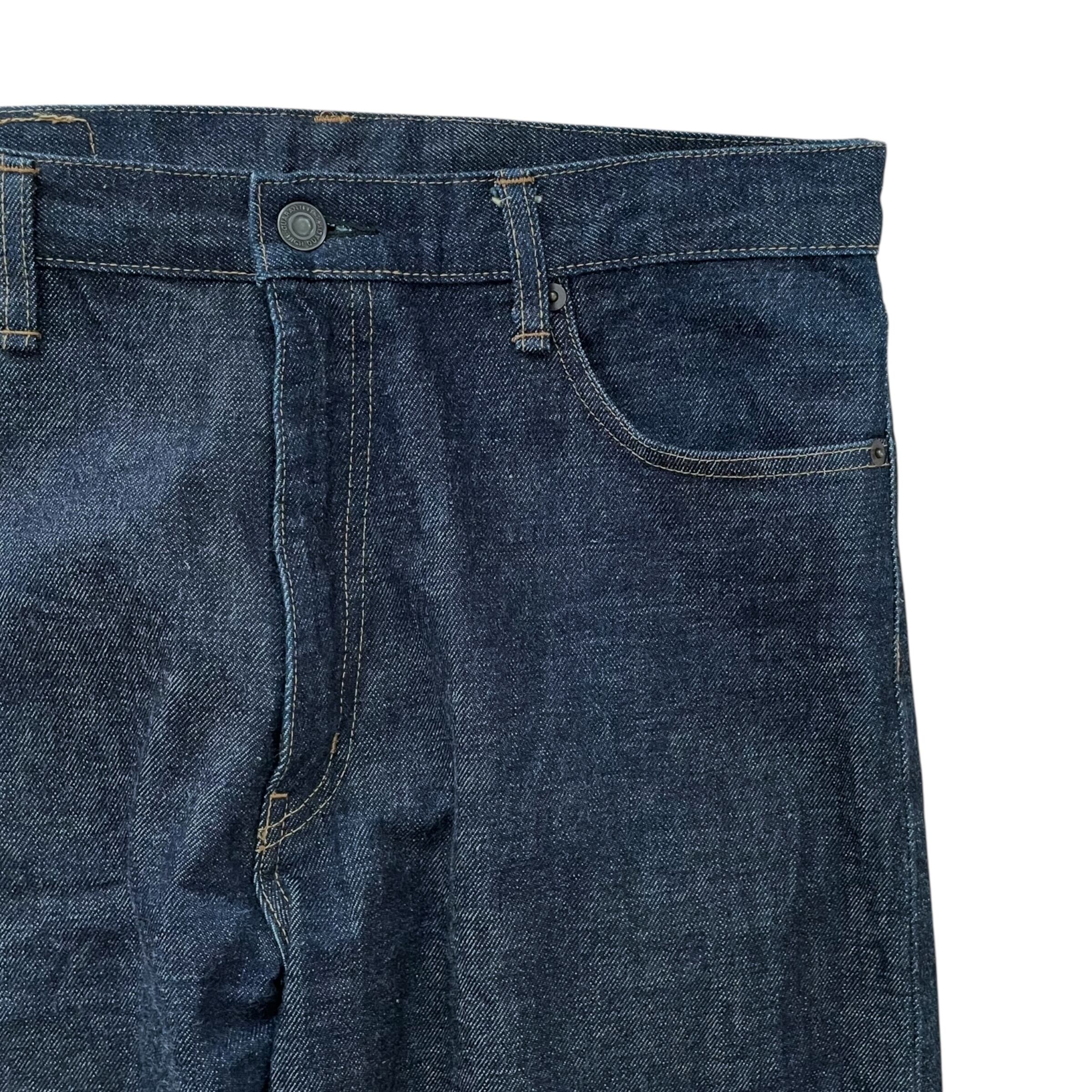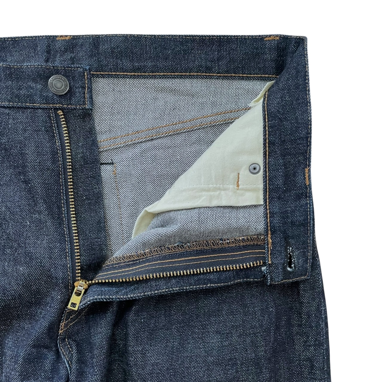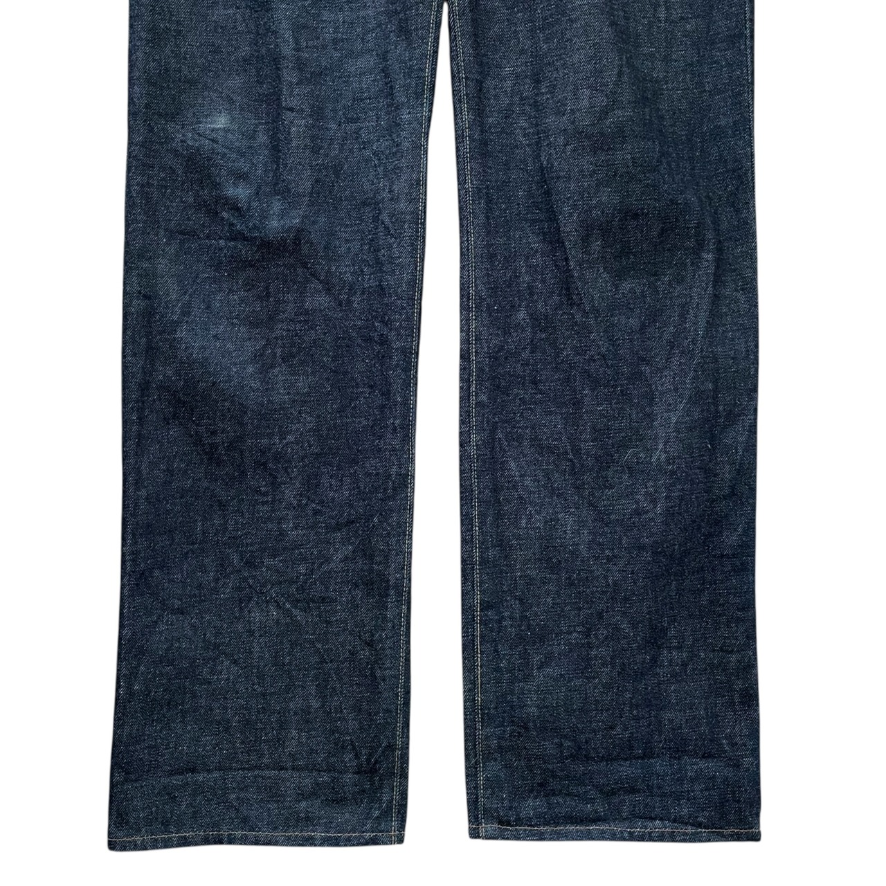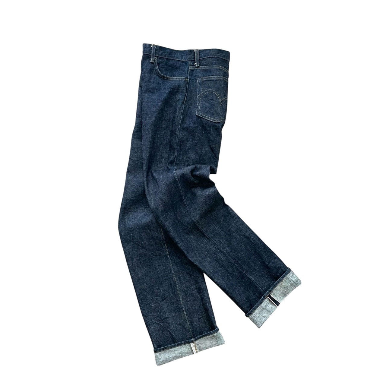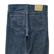裾回り、もも周りは共にやや余裕があり、少しゆとりのあるストレートなシルエットで着用出来ます