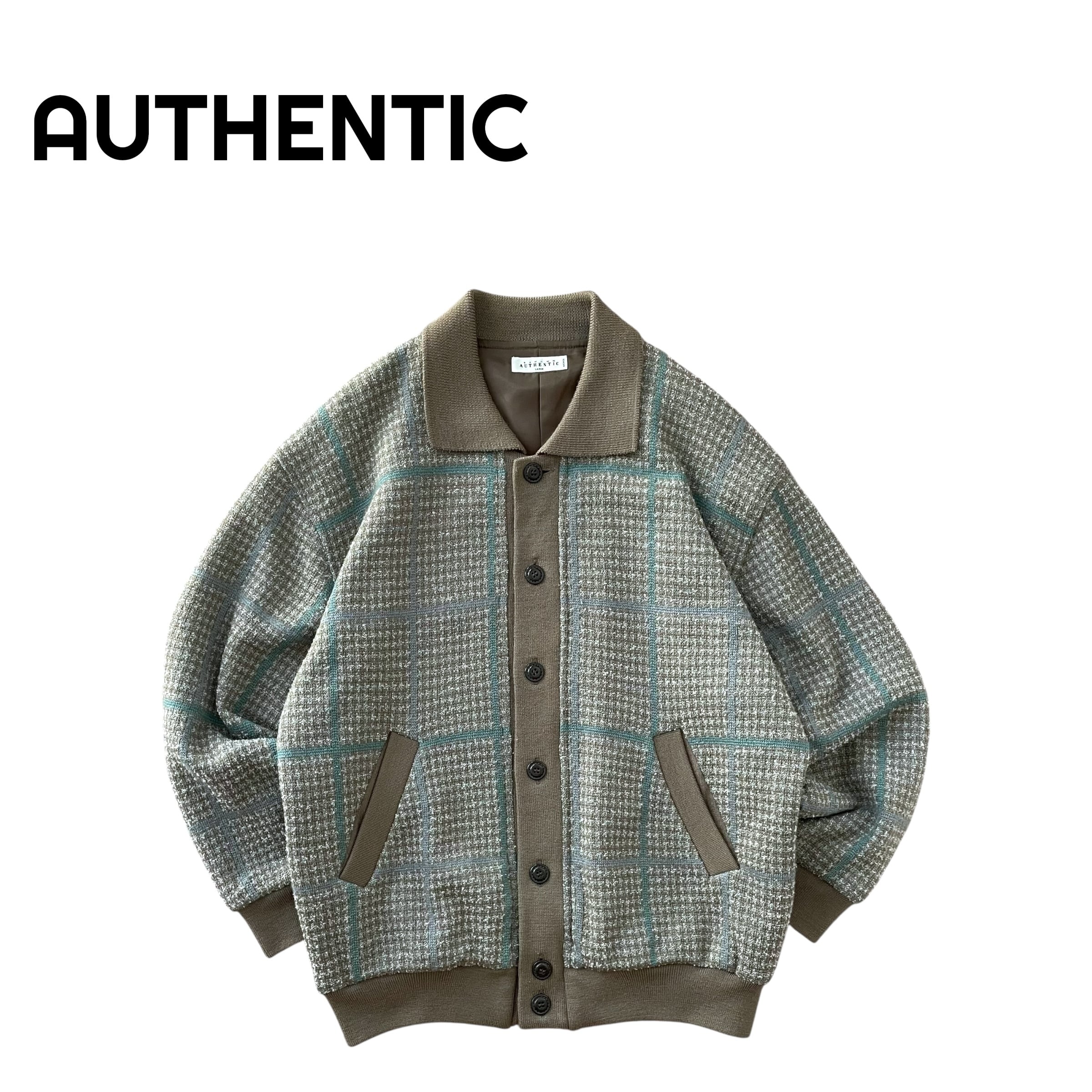 AUTHENTIC 日本製 90s ウール チェック 襟付きカーディガン