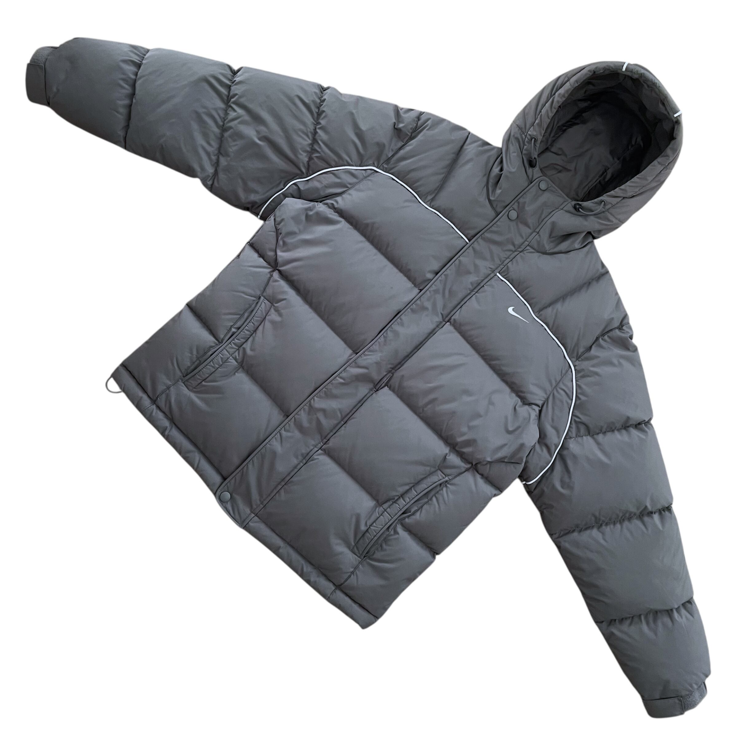 オフのパイピングがアクセントのフードタイプのNIKEのダウンジャケット