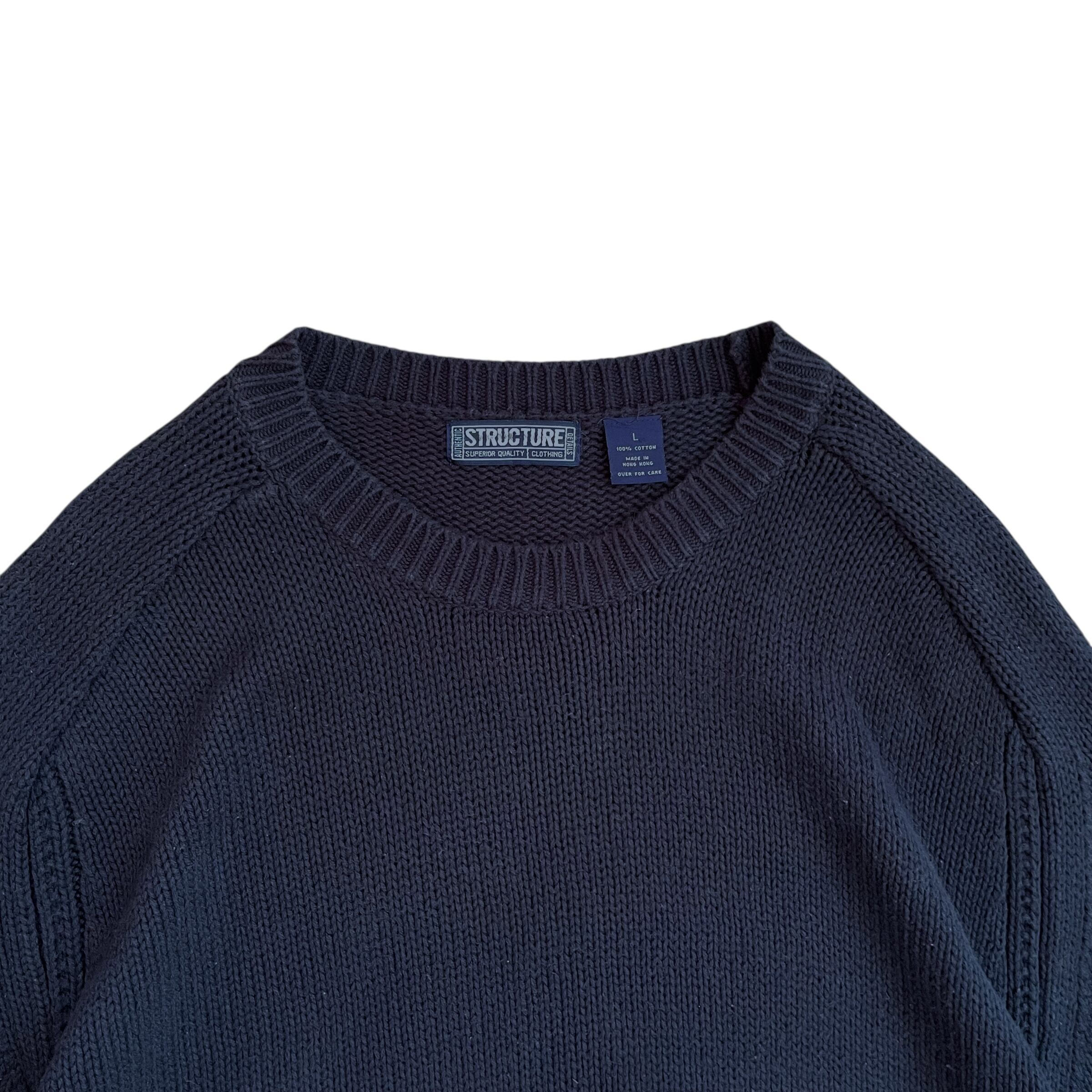STRUCURE 香港製 90s コットンニット セーター ネイビー
