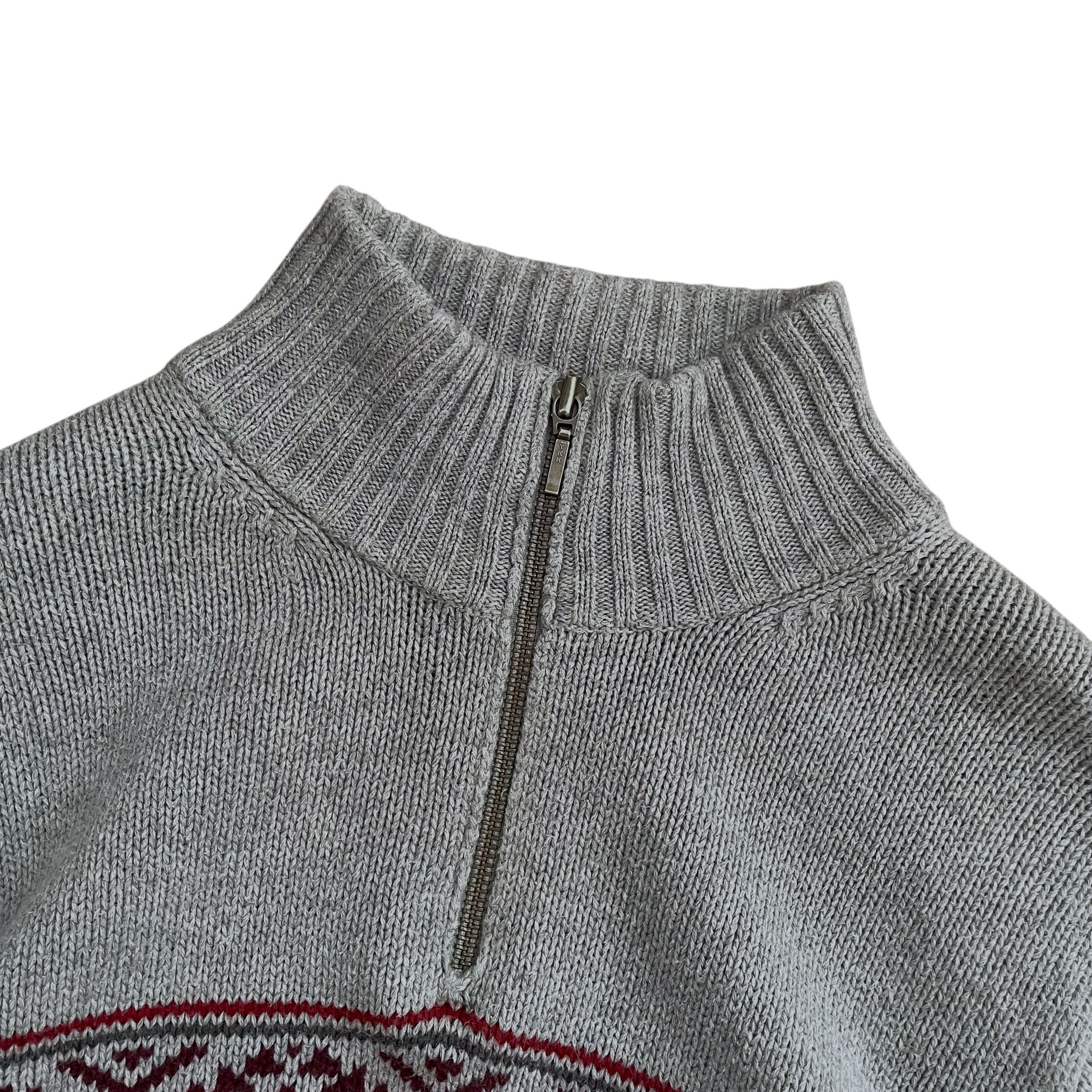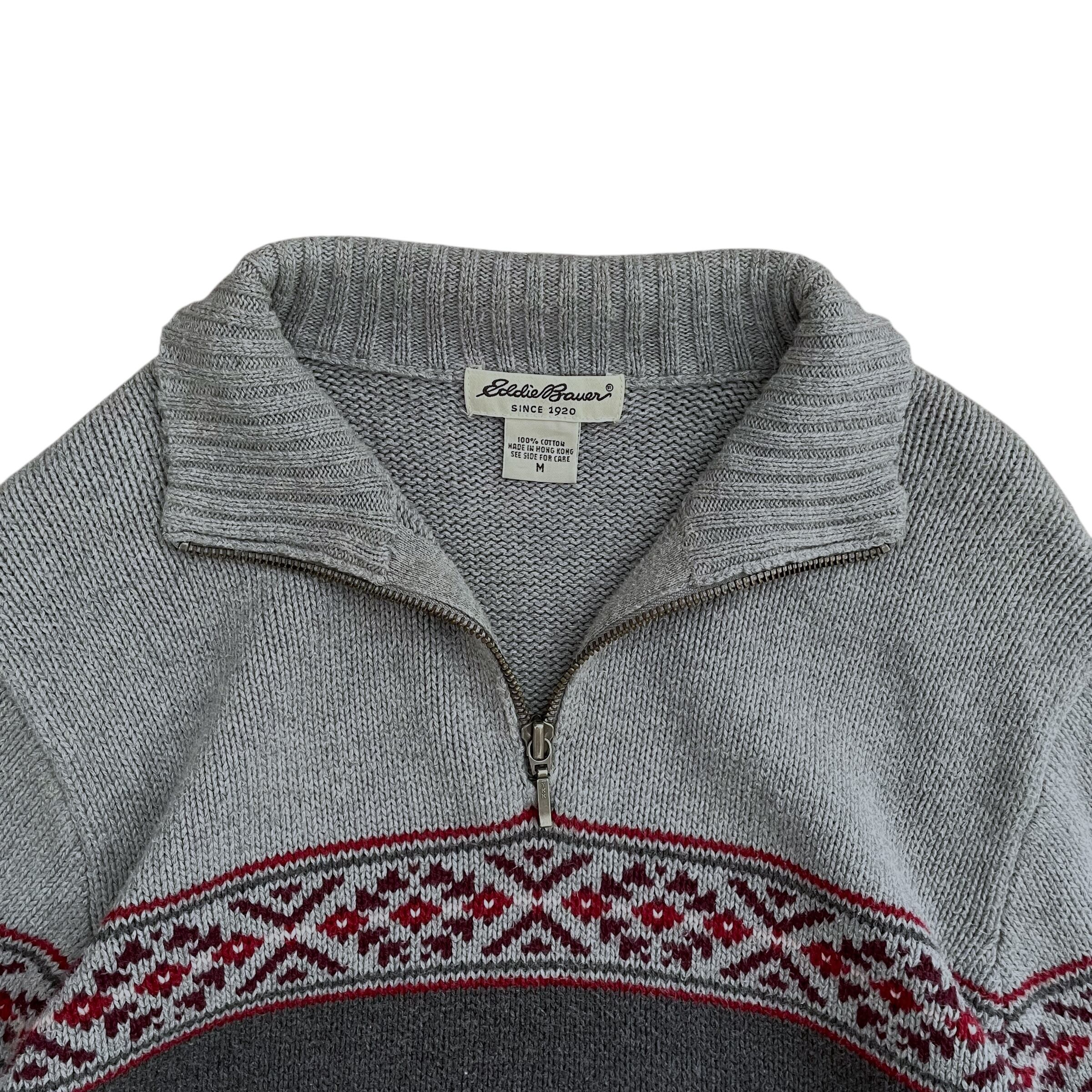 EddieBauer 香港製 00s ハーフジップ 切替 コットンニット
