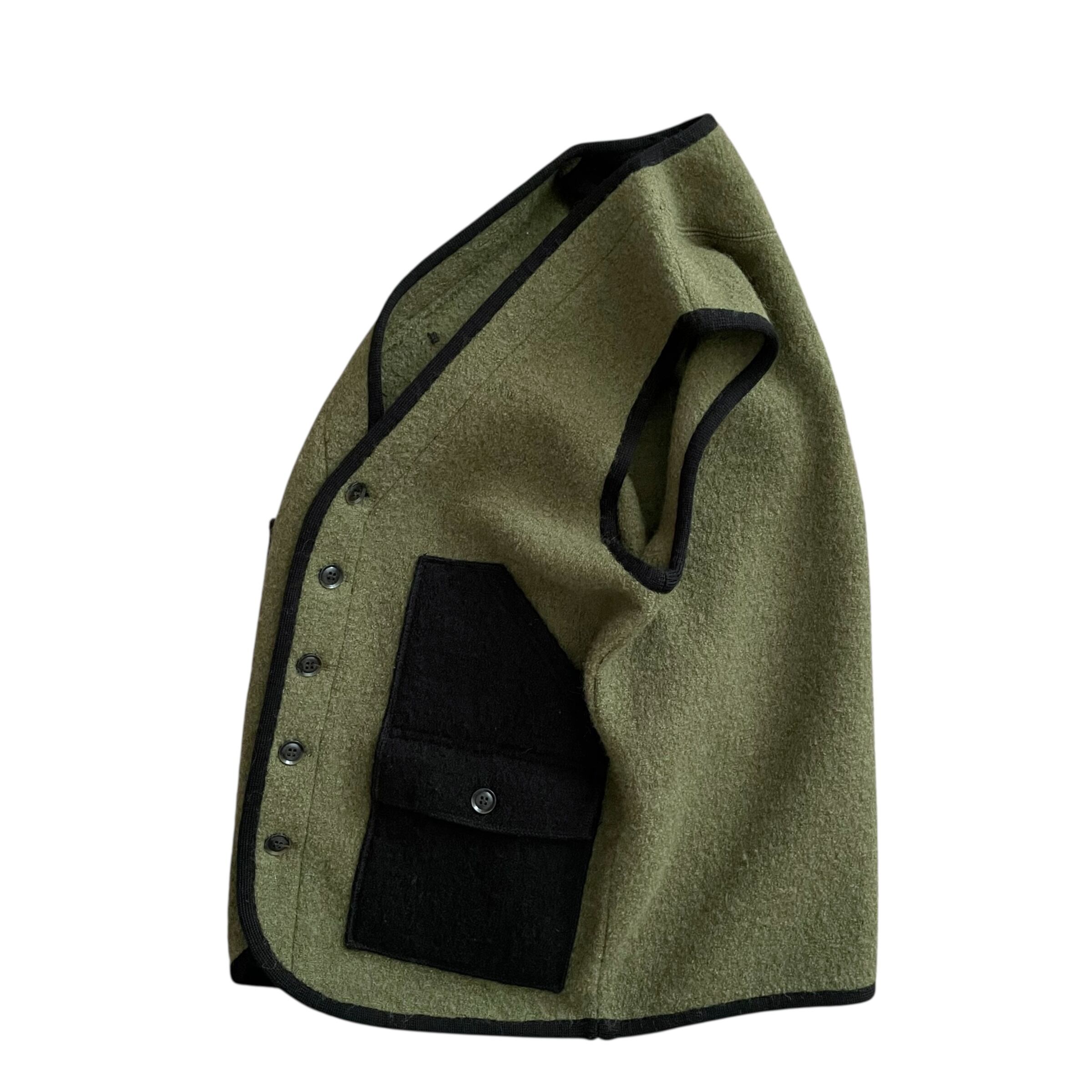 ワッペン付きのウールベスト