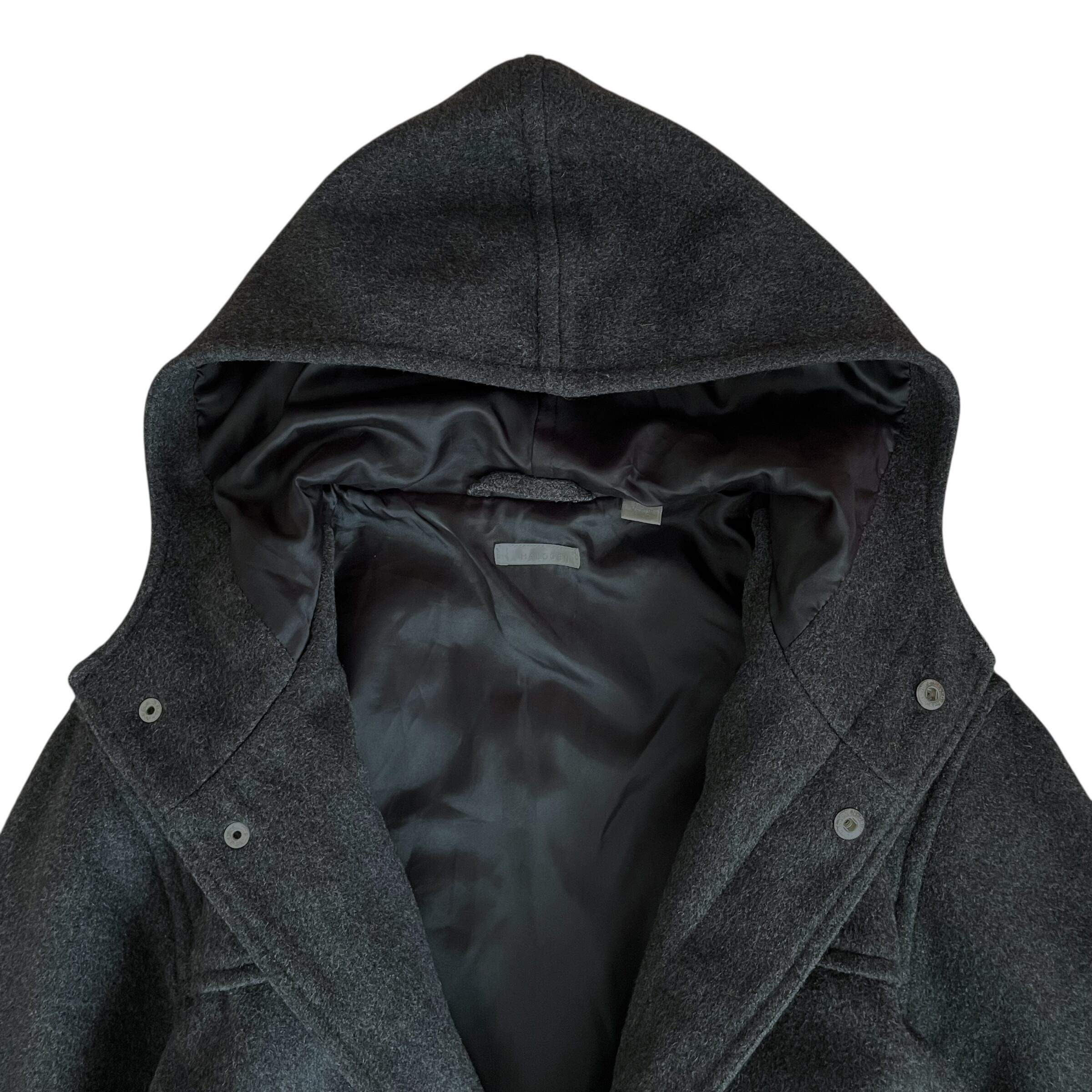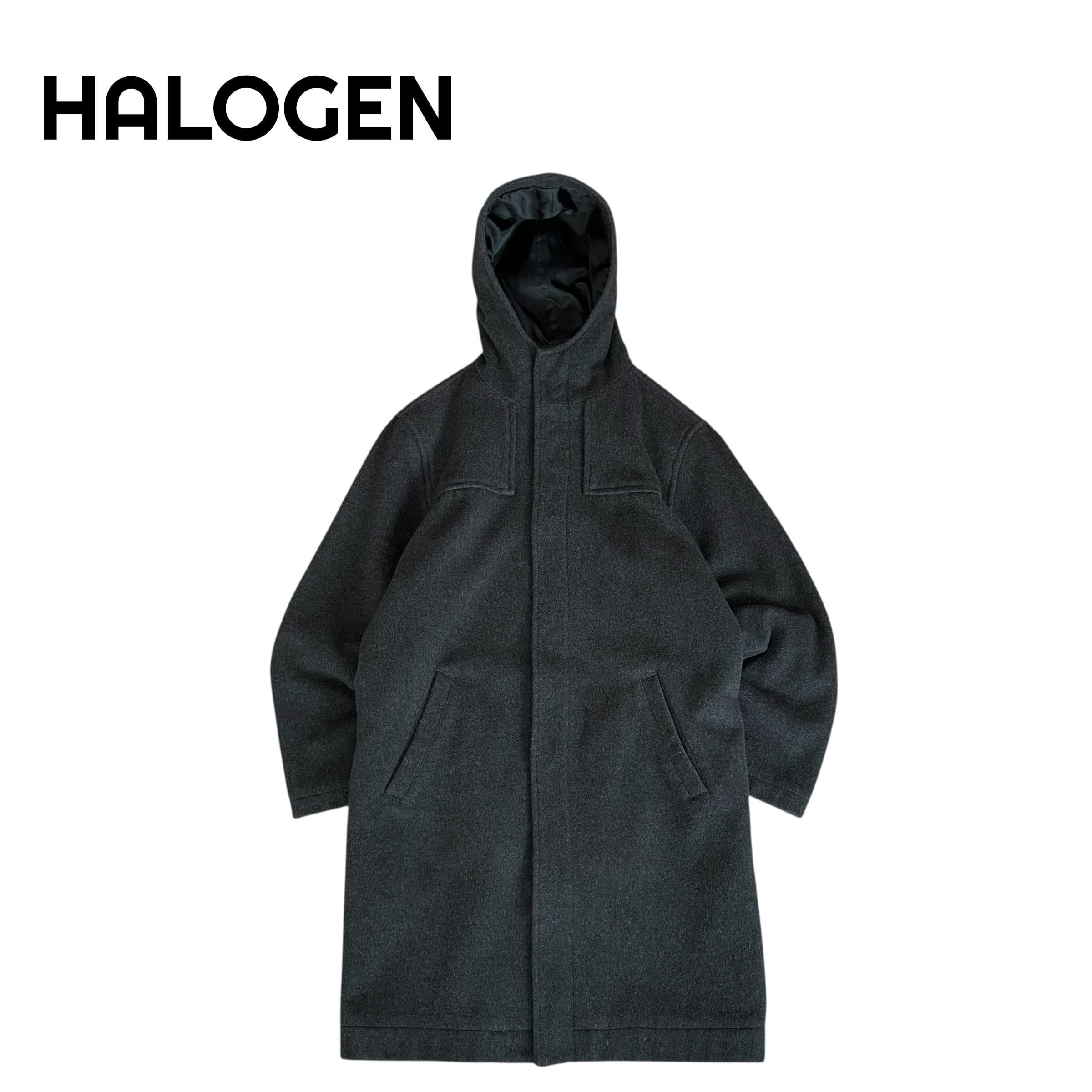 HALOGEN 90s ウール フード付き ロングコート グレー