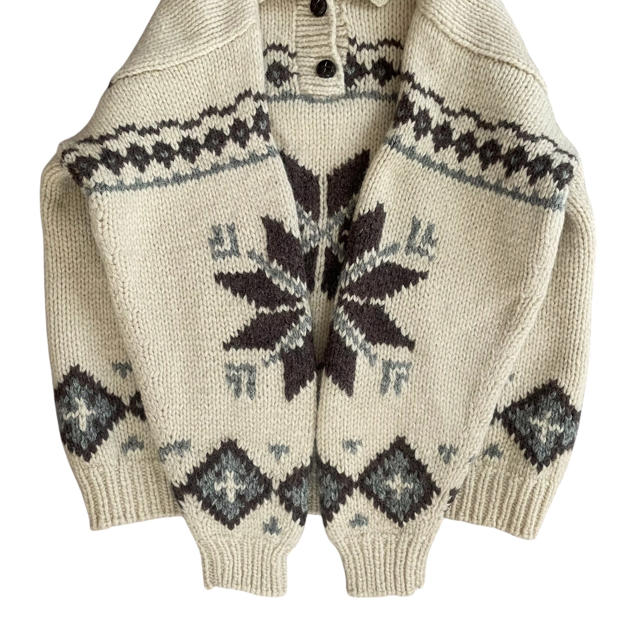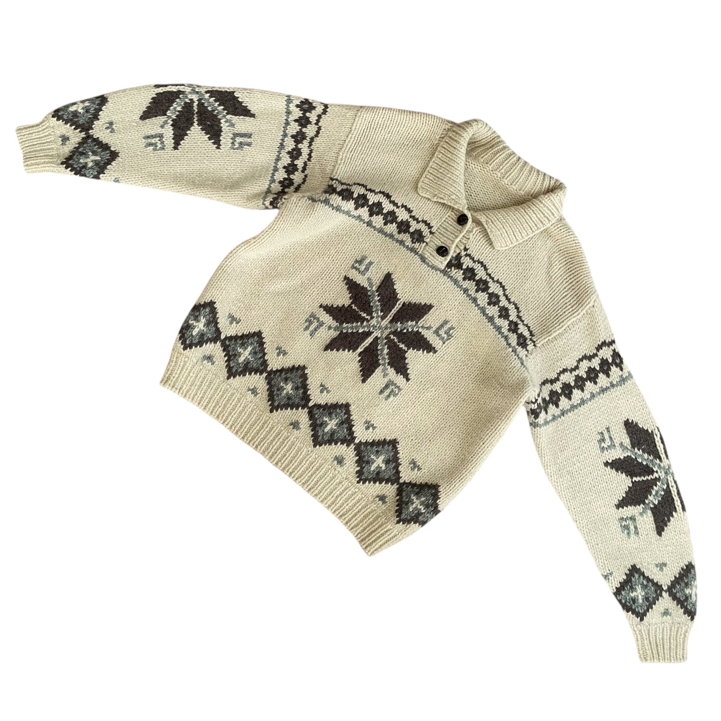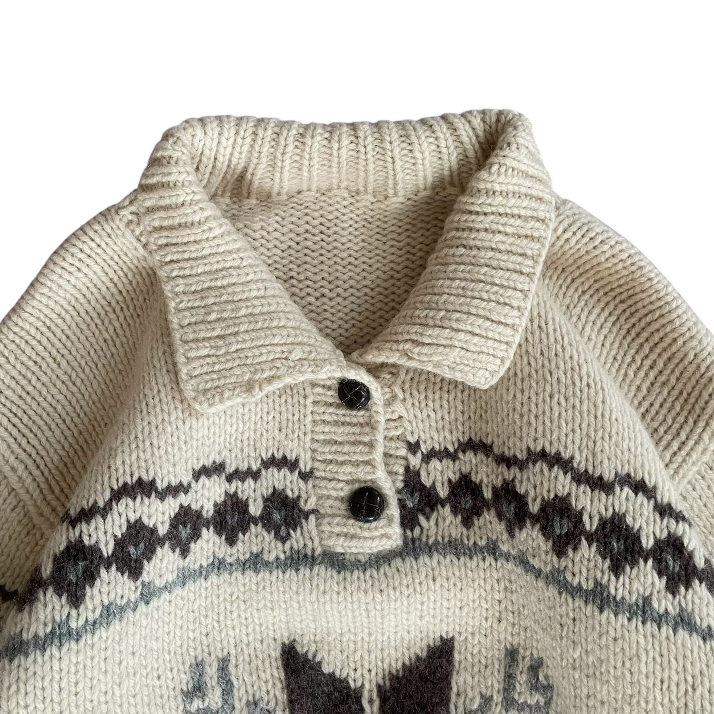 Vintage 90s ノルディック柄 襟付き ウールニット アイボリー