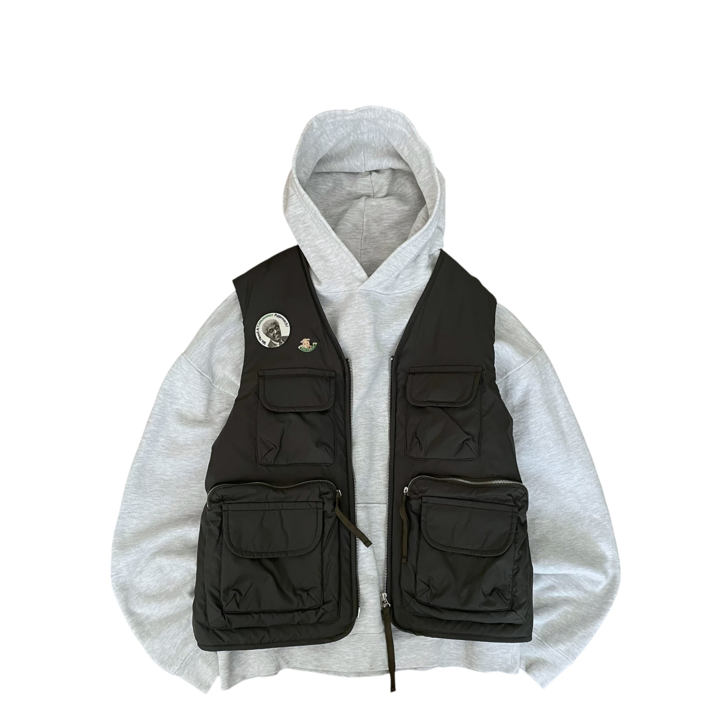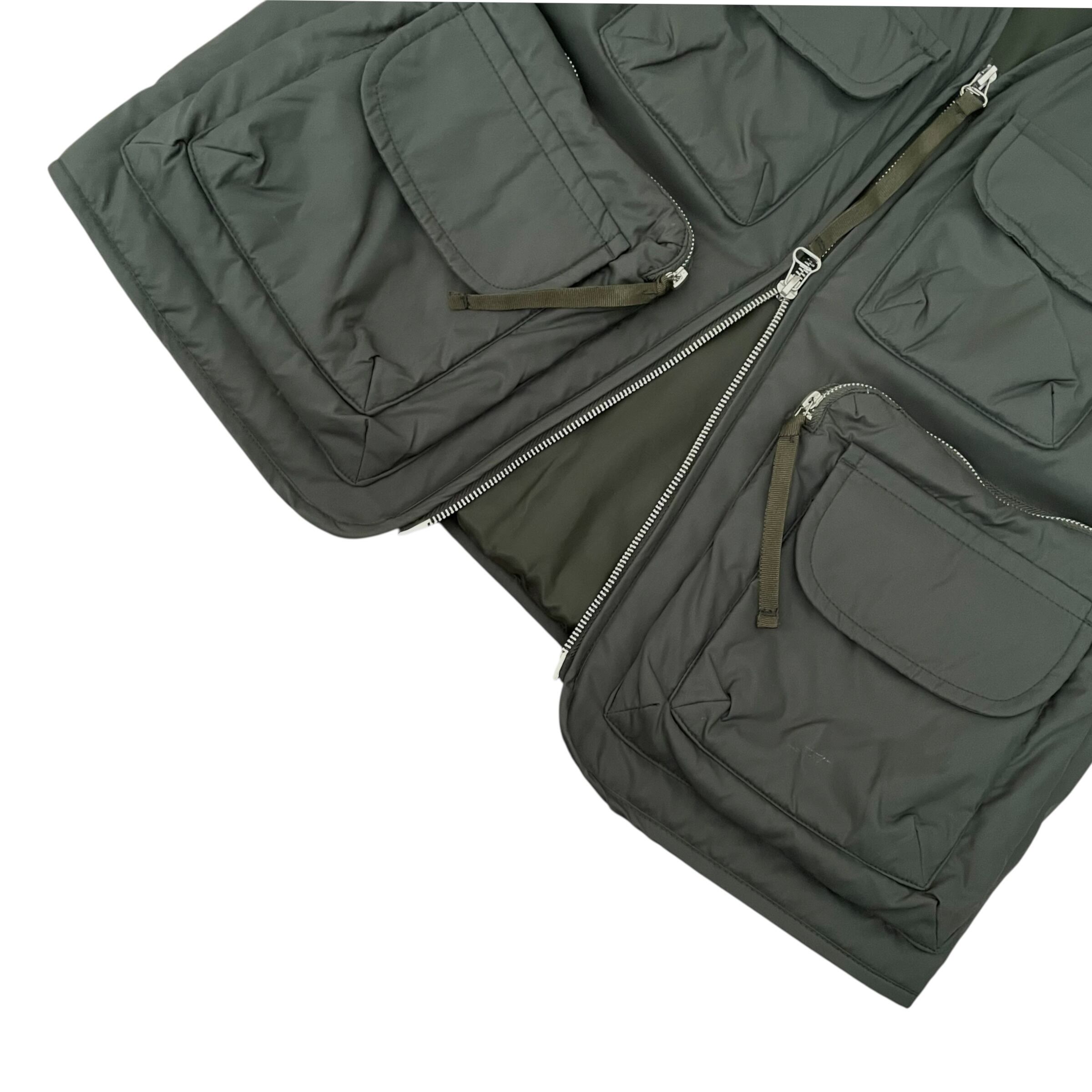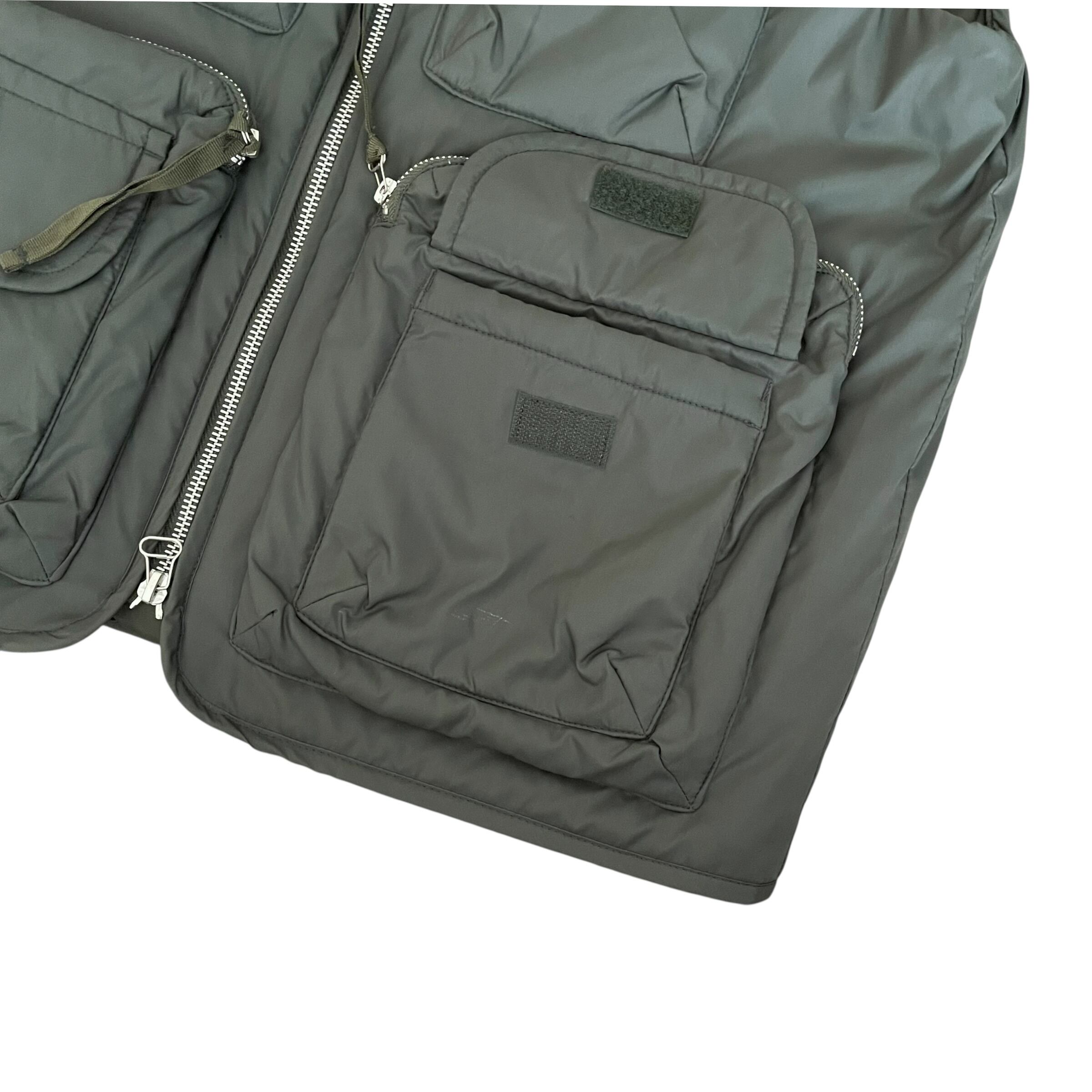 USED 00s 缶バッチ付き 中綿入り マルチポケット ベスト KHAKI
