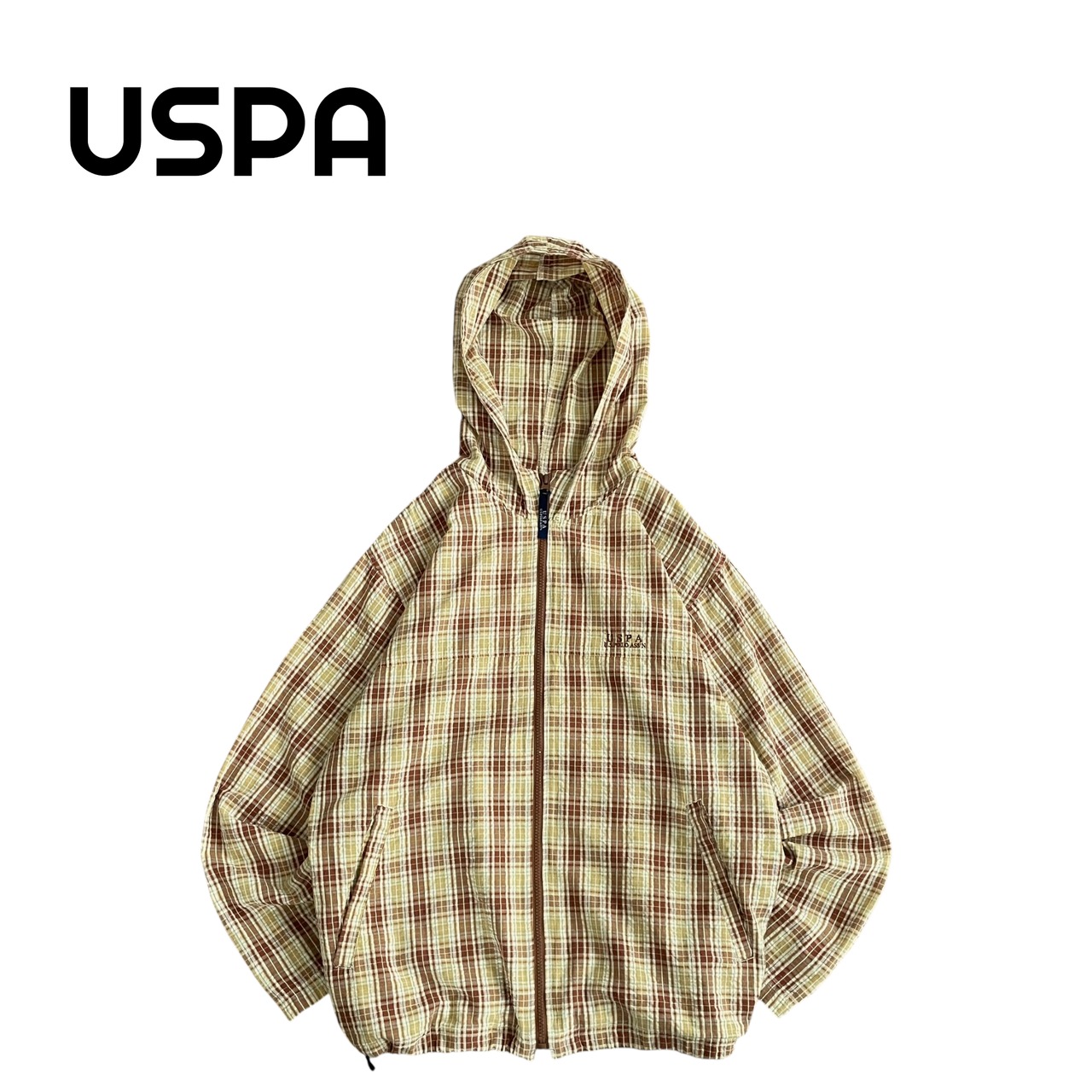 USPA 90s シアサッカーチェック コットンパーカー ドローコード付