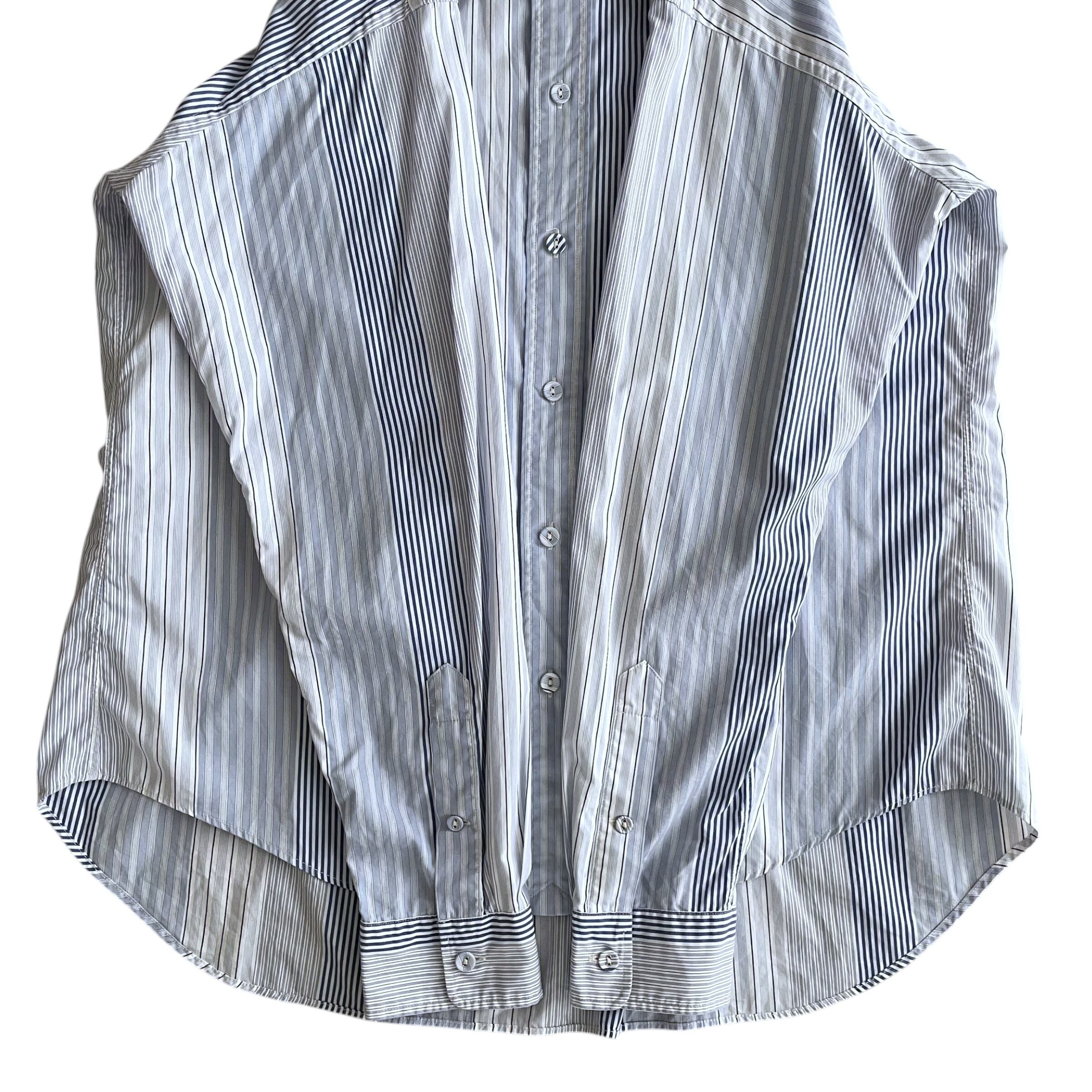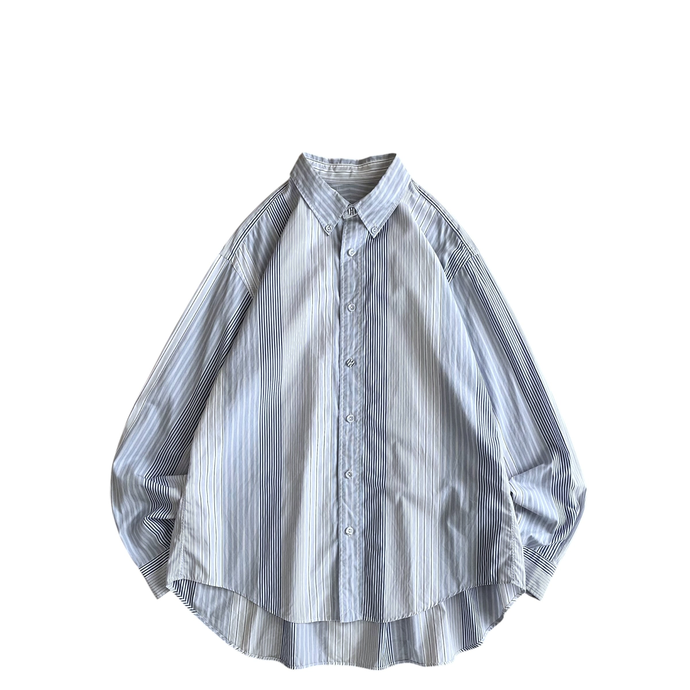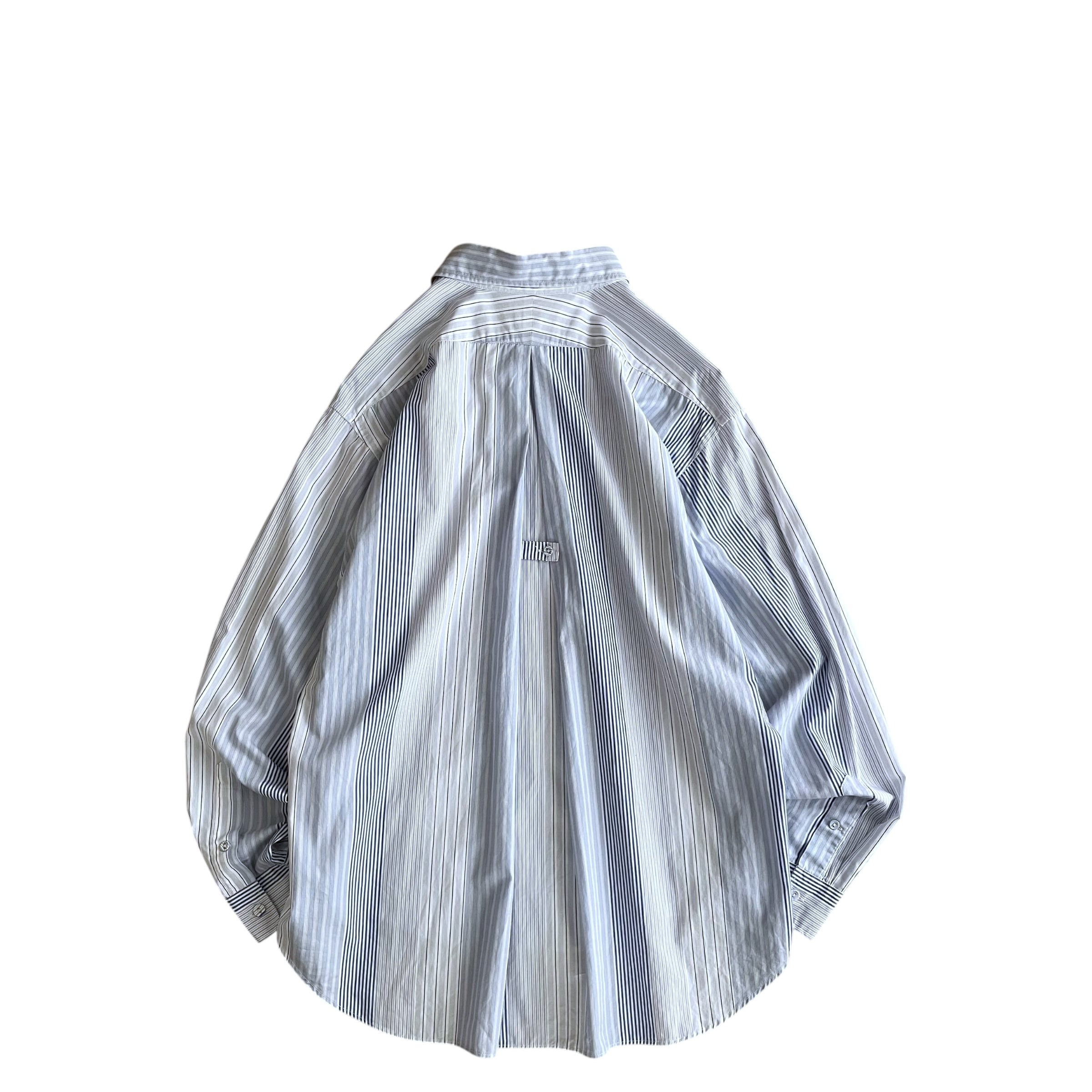 USED 00s マルチストライプ BDシャツ 長袖 ドレスシャツ BLU