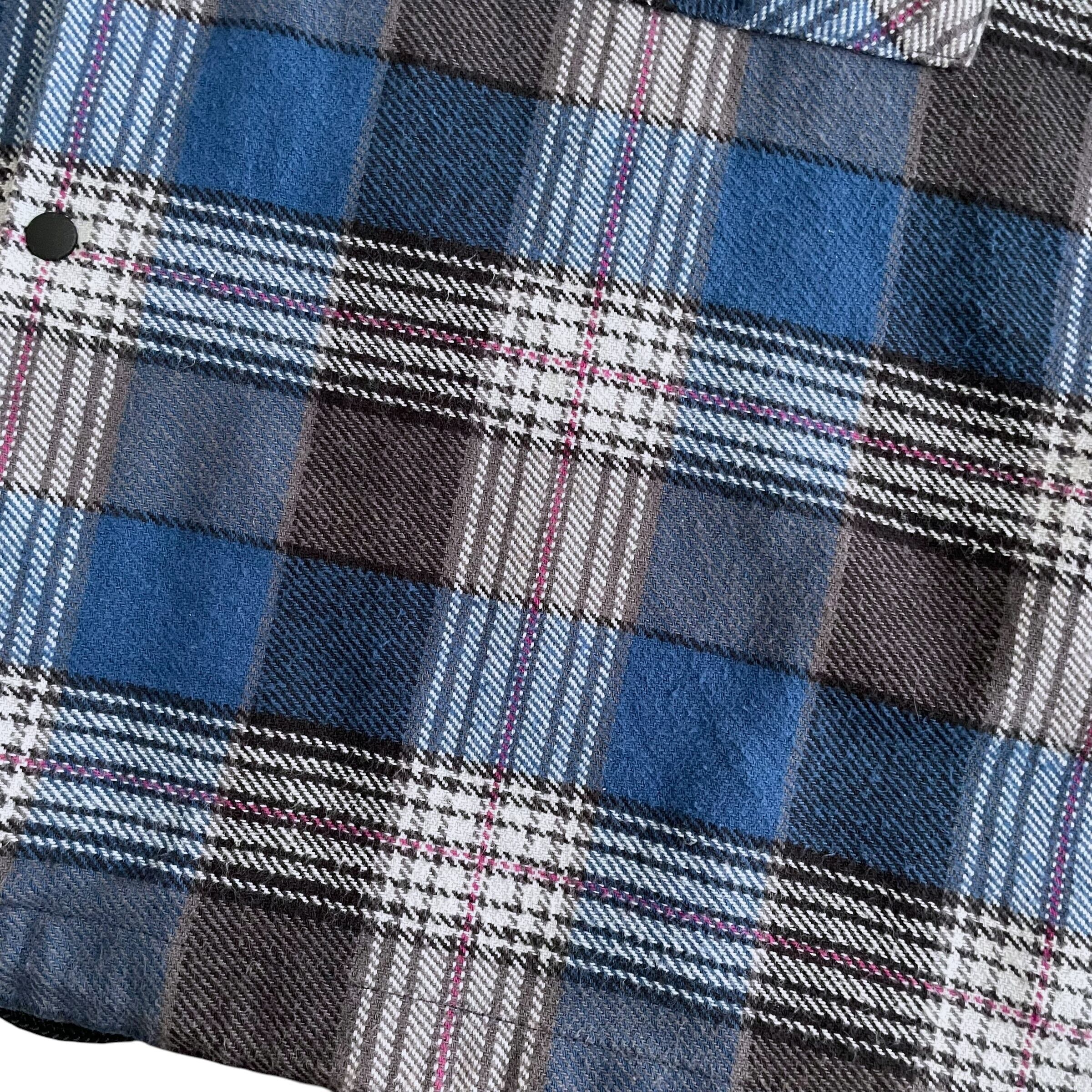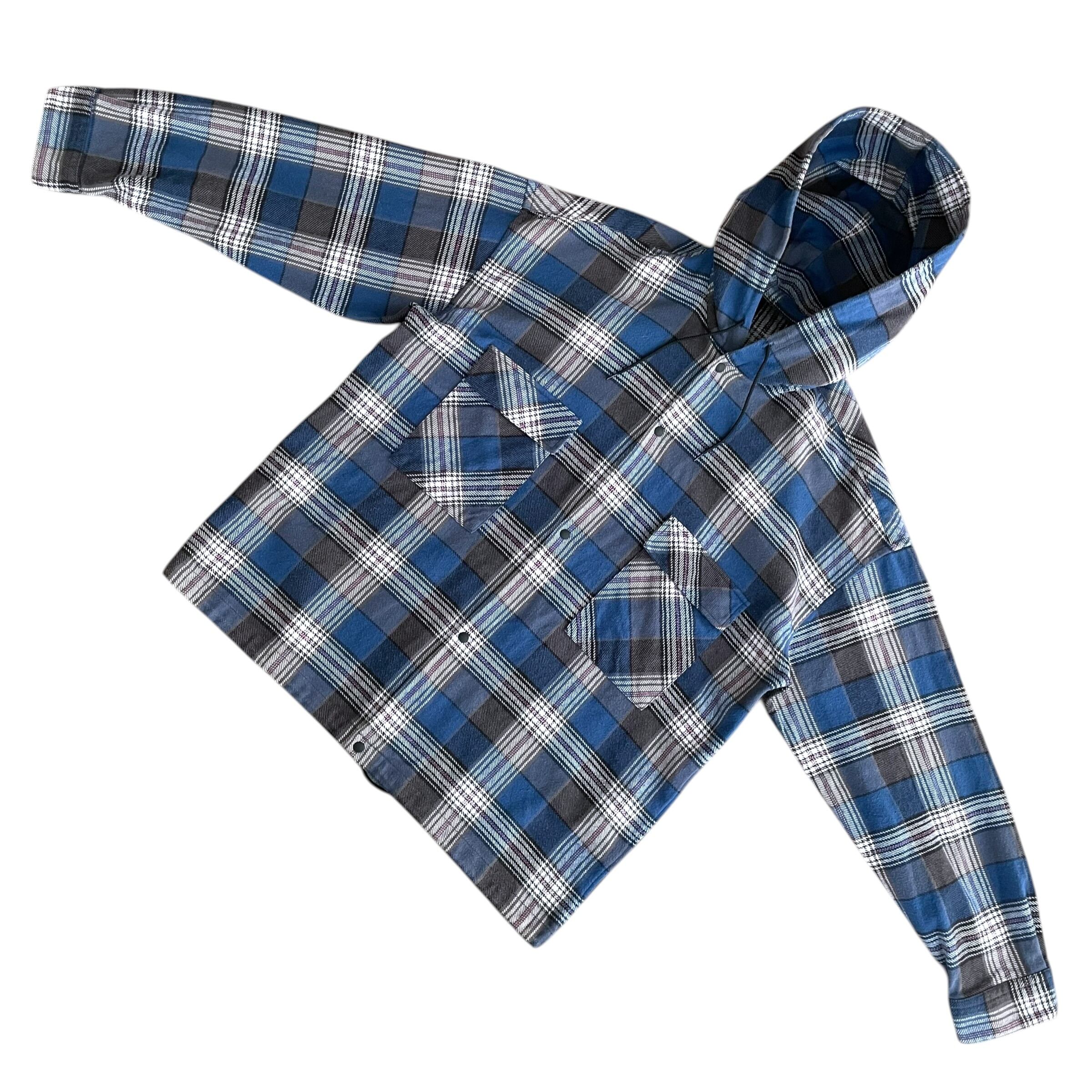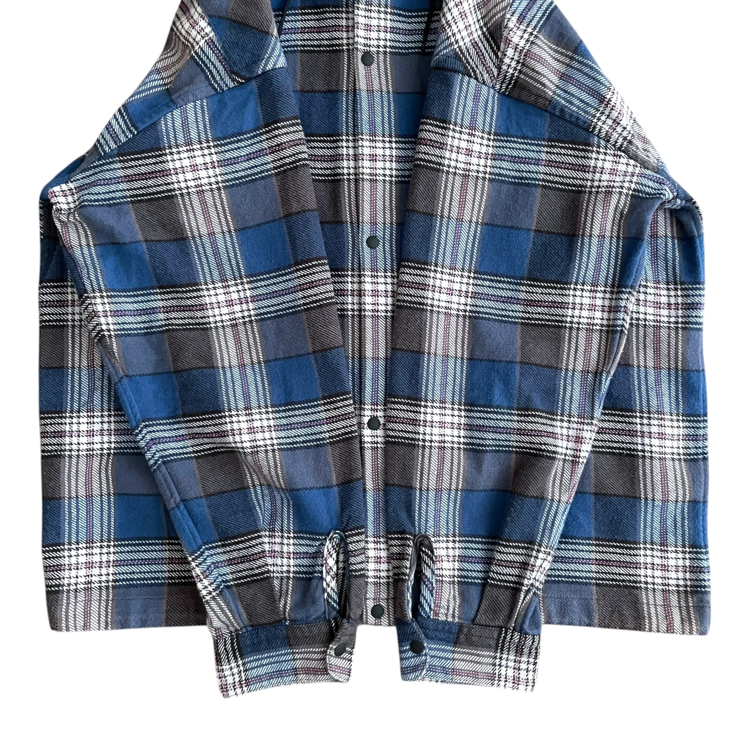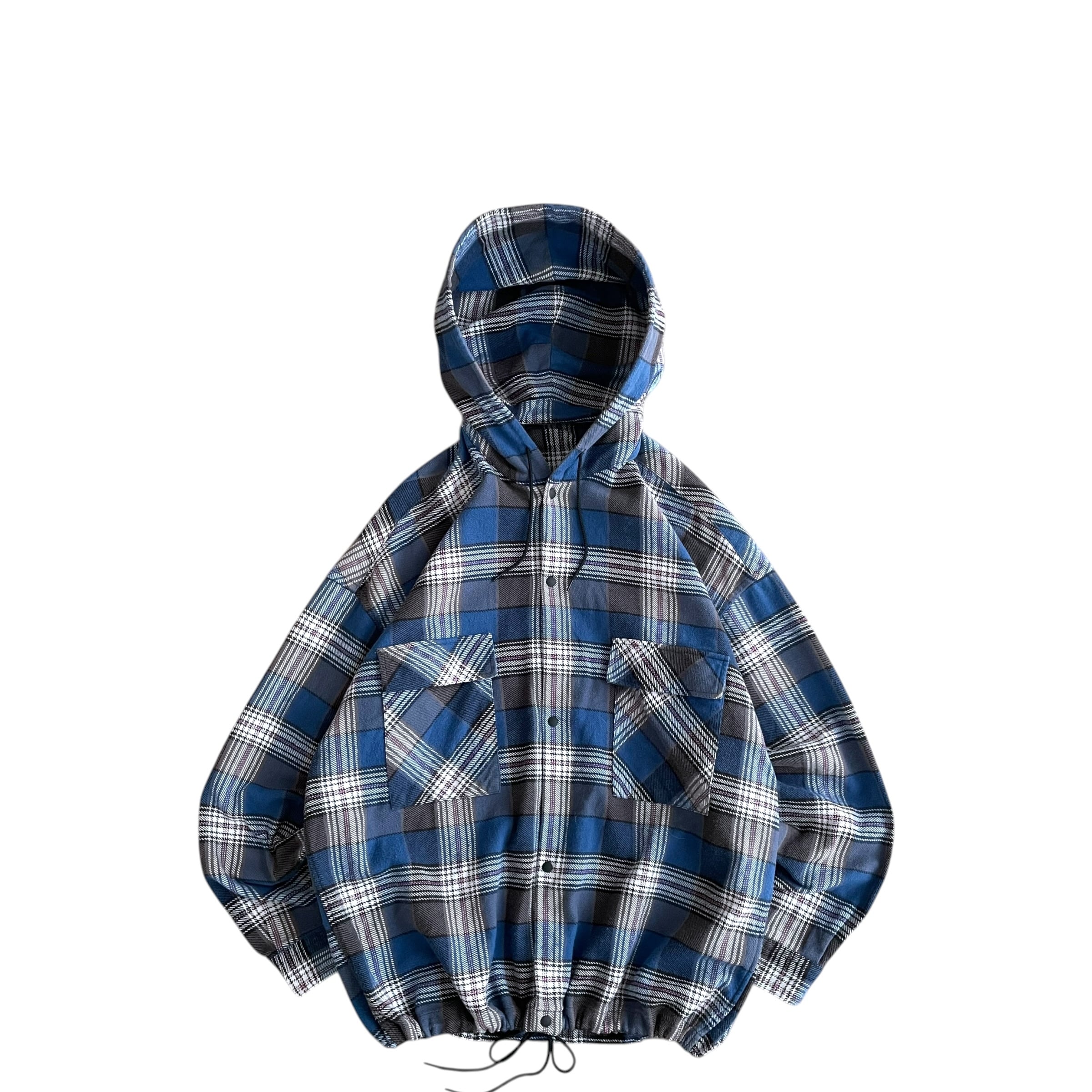 USED 00s フード付き チェック ネルシャツ ドローコード付 BL