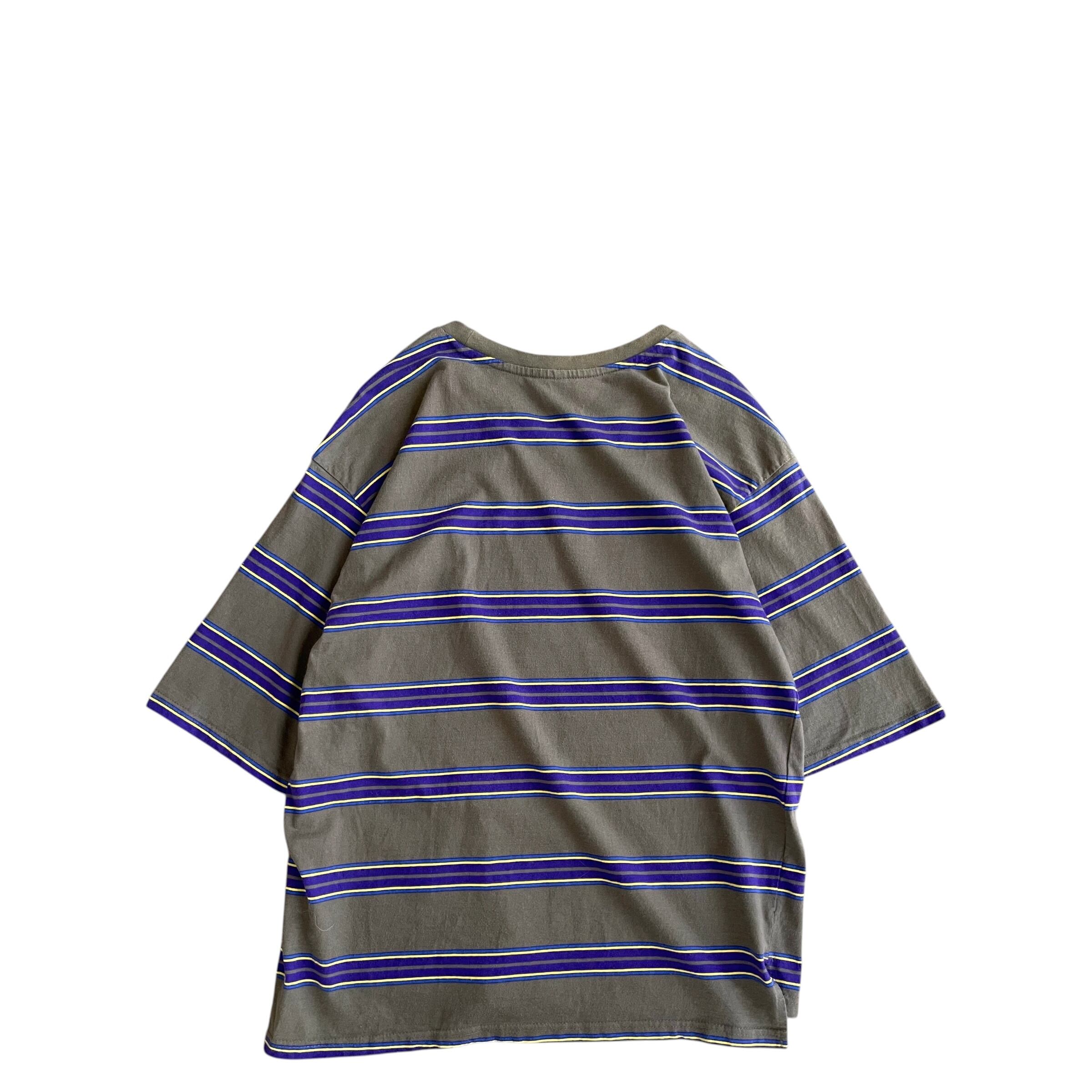 USED 00s マルチボーダー Tシャツ DGRY 裾スリット