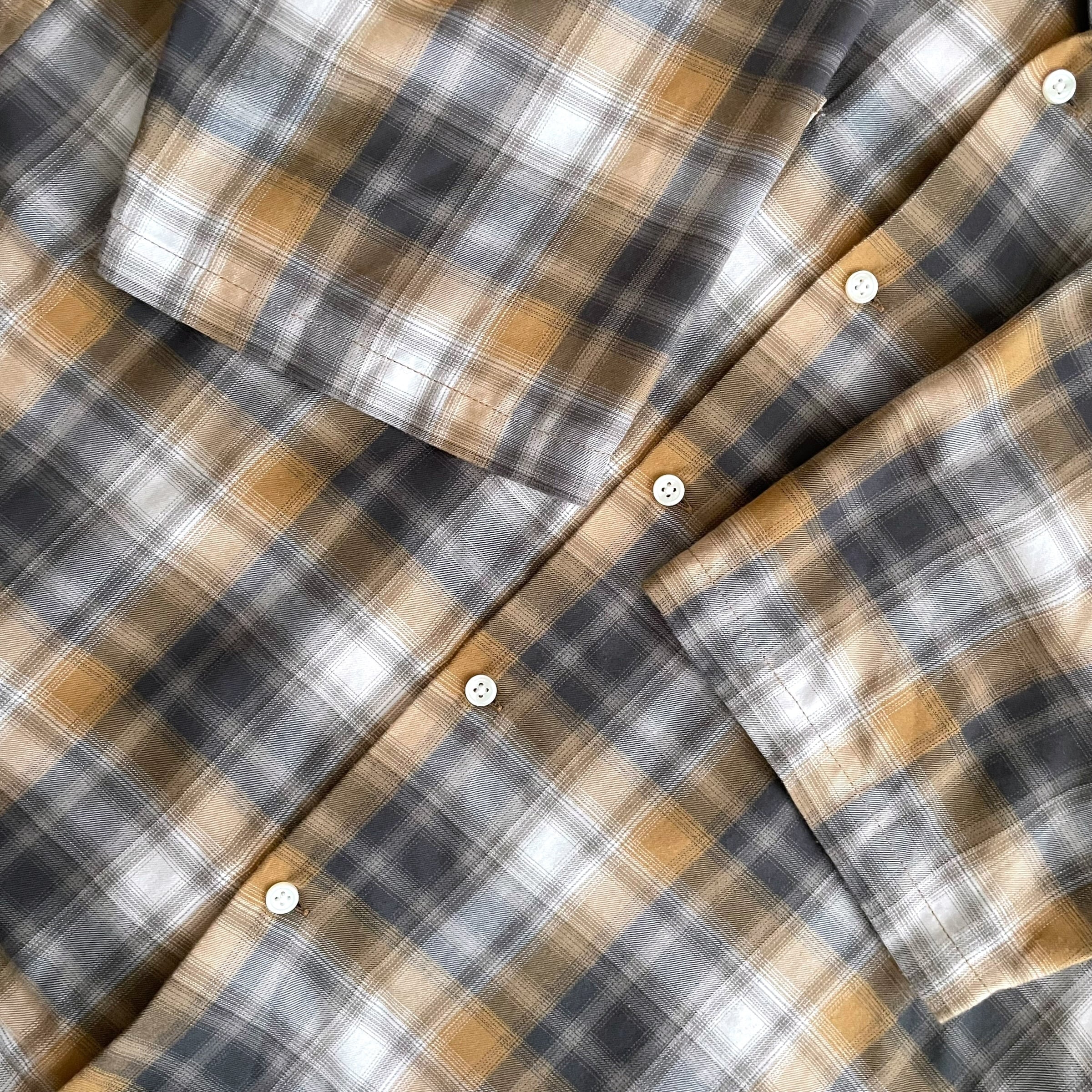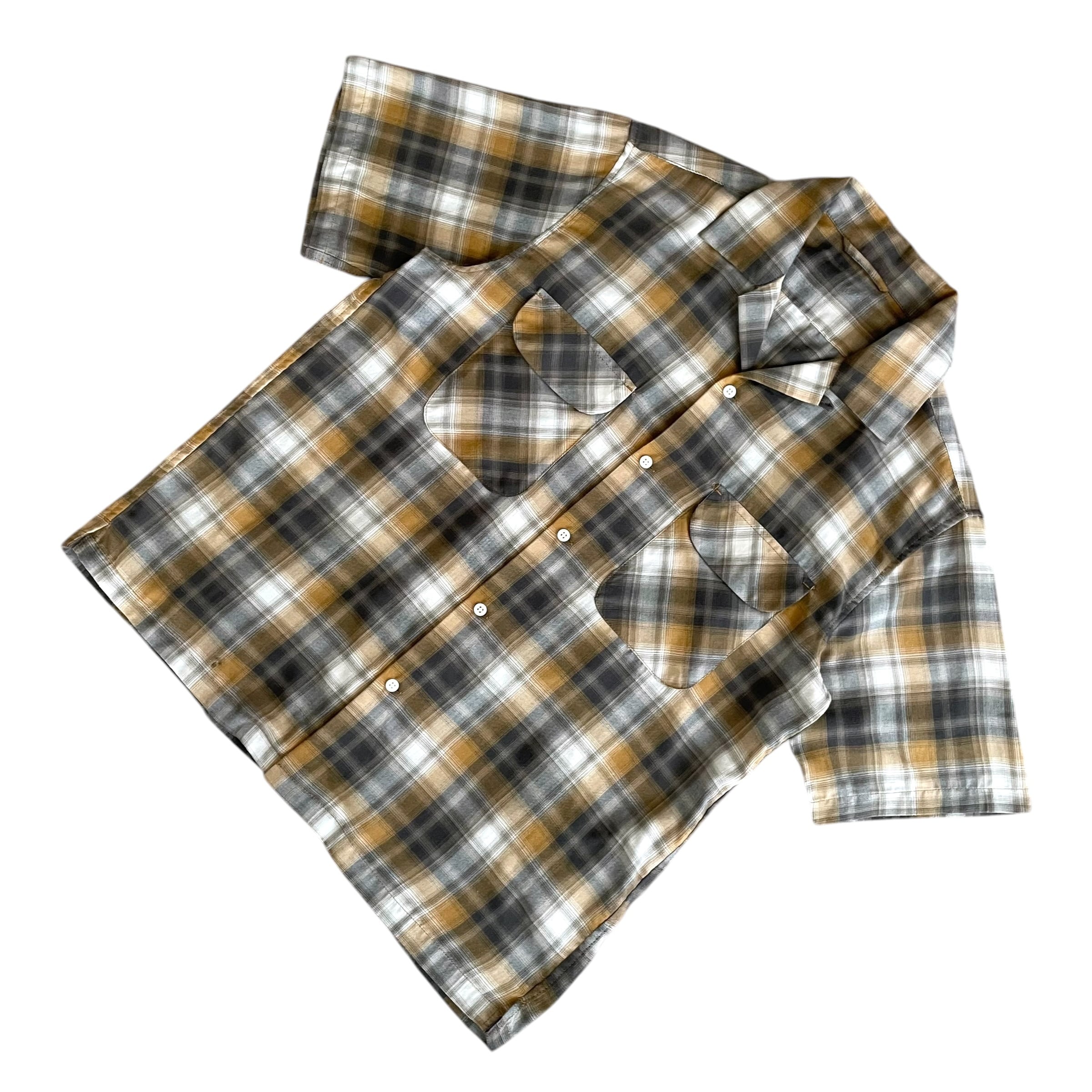 USED 00s オンブレチェック 半袖 オープンカラー シャツ