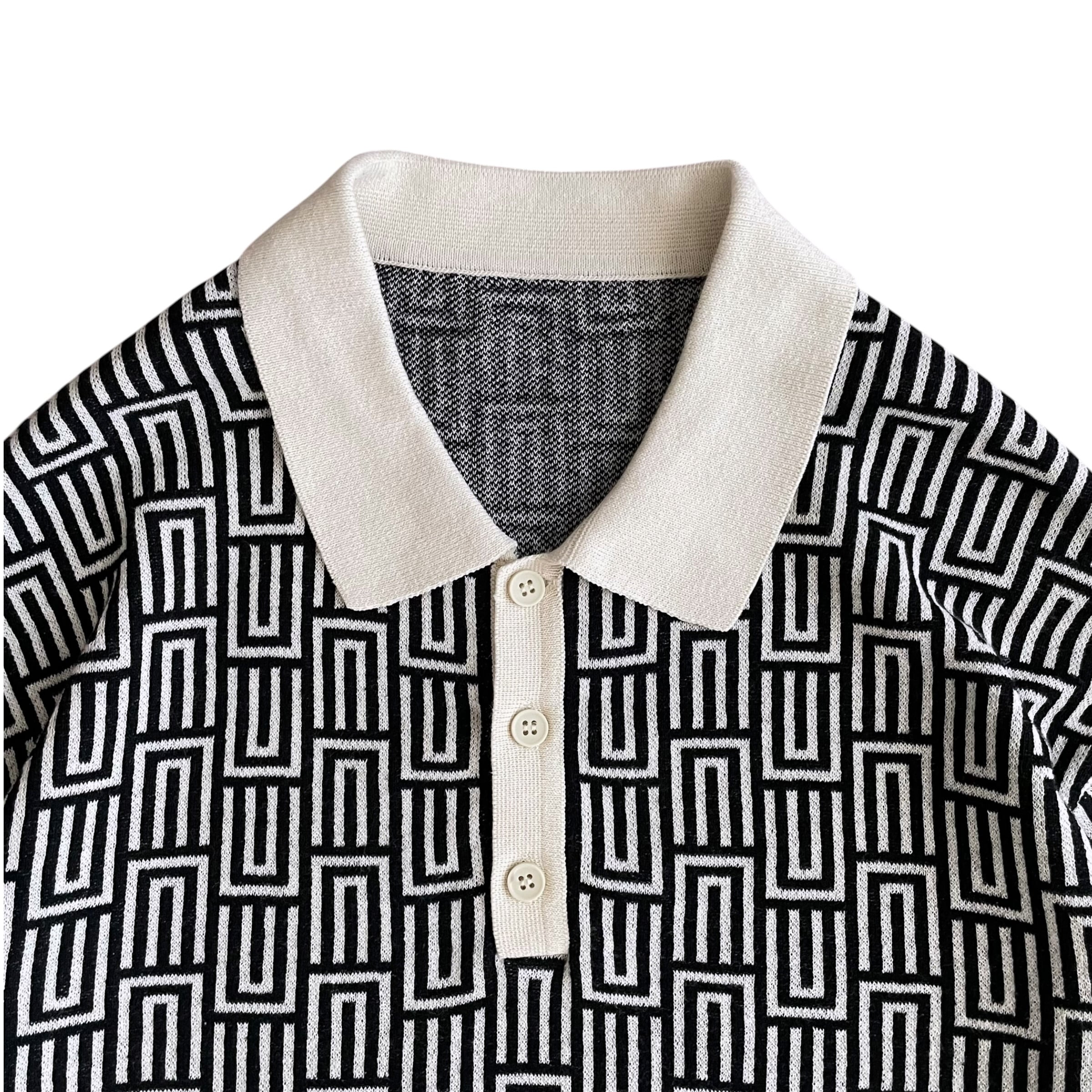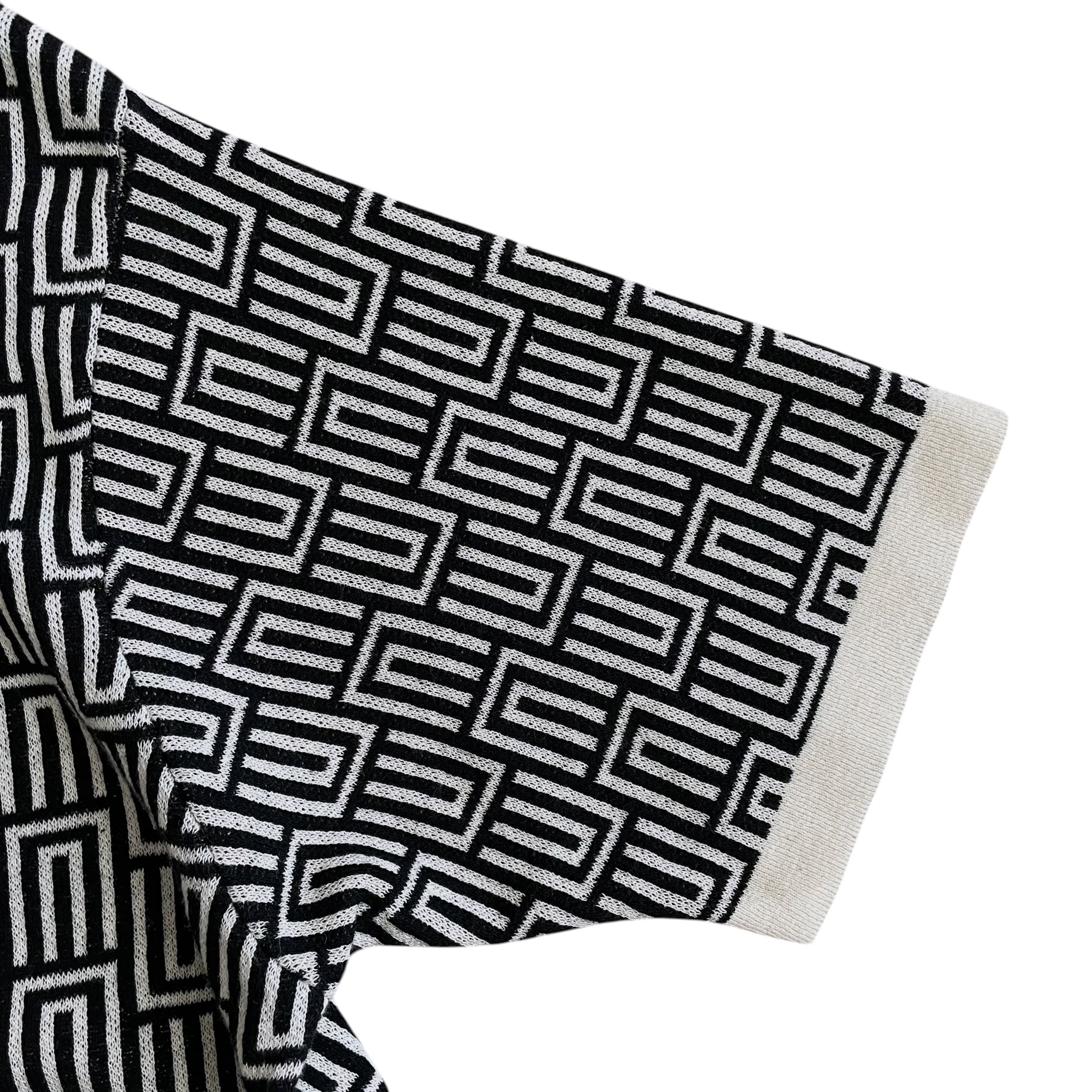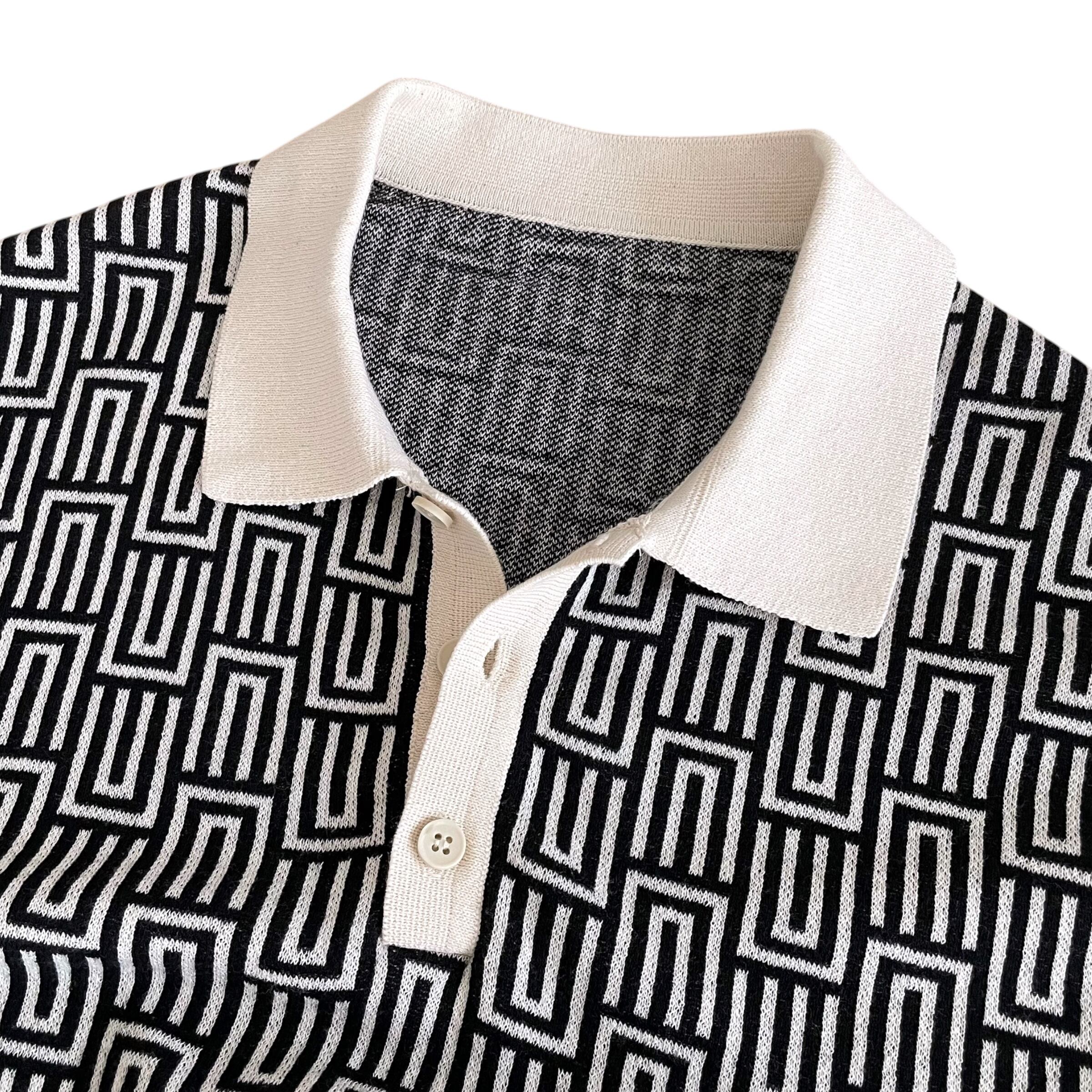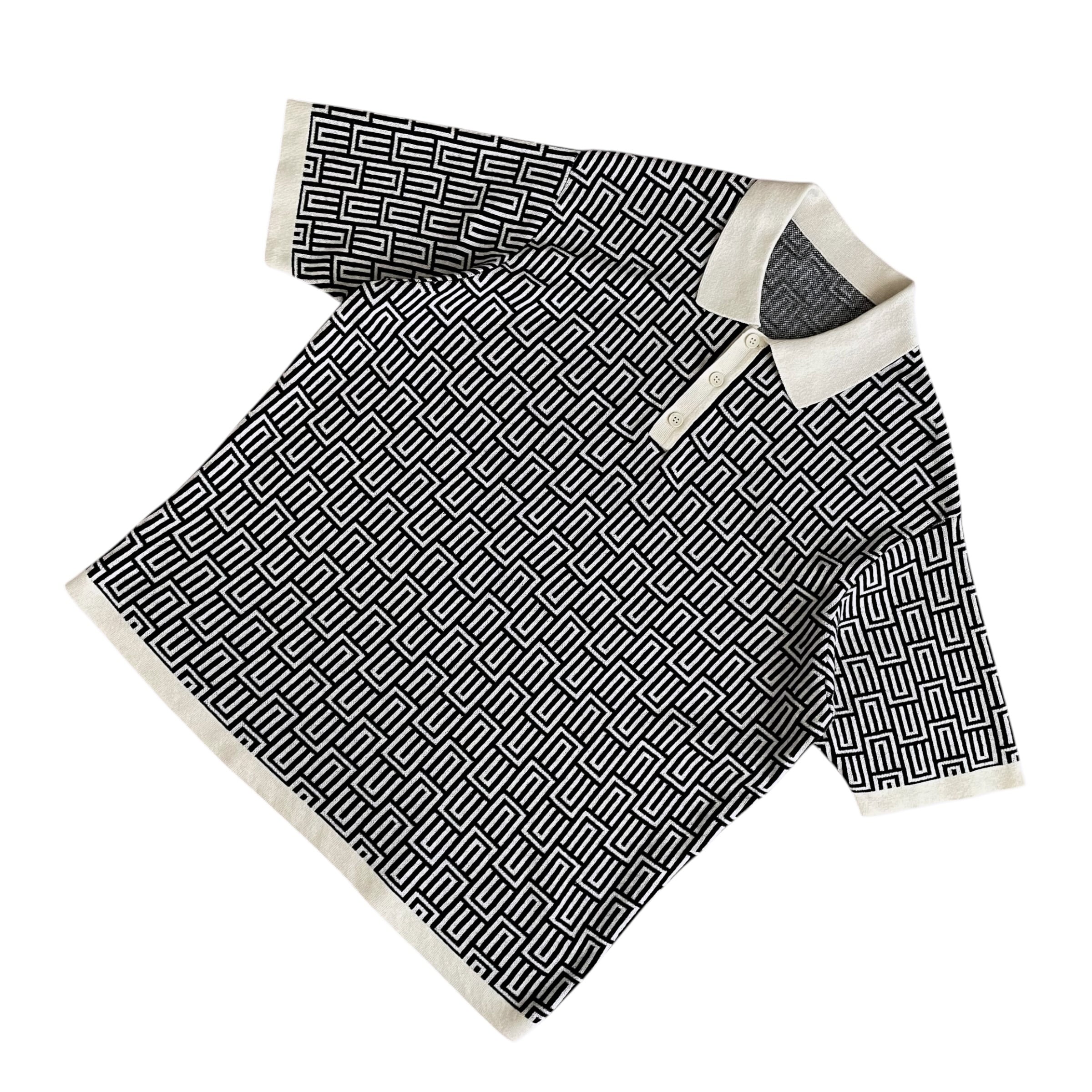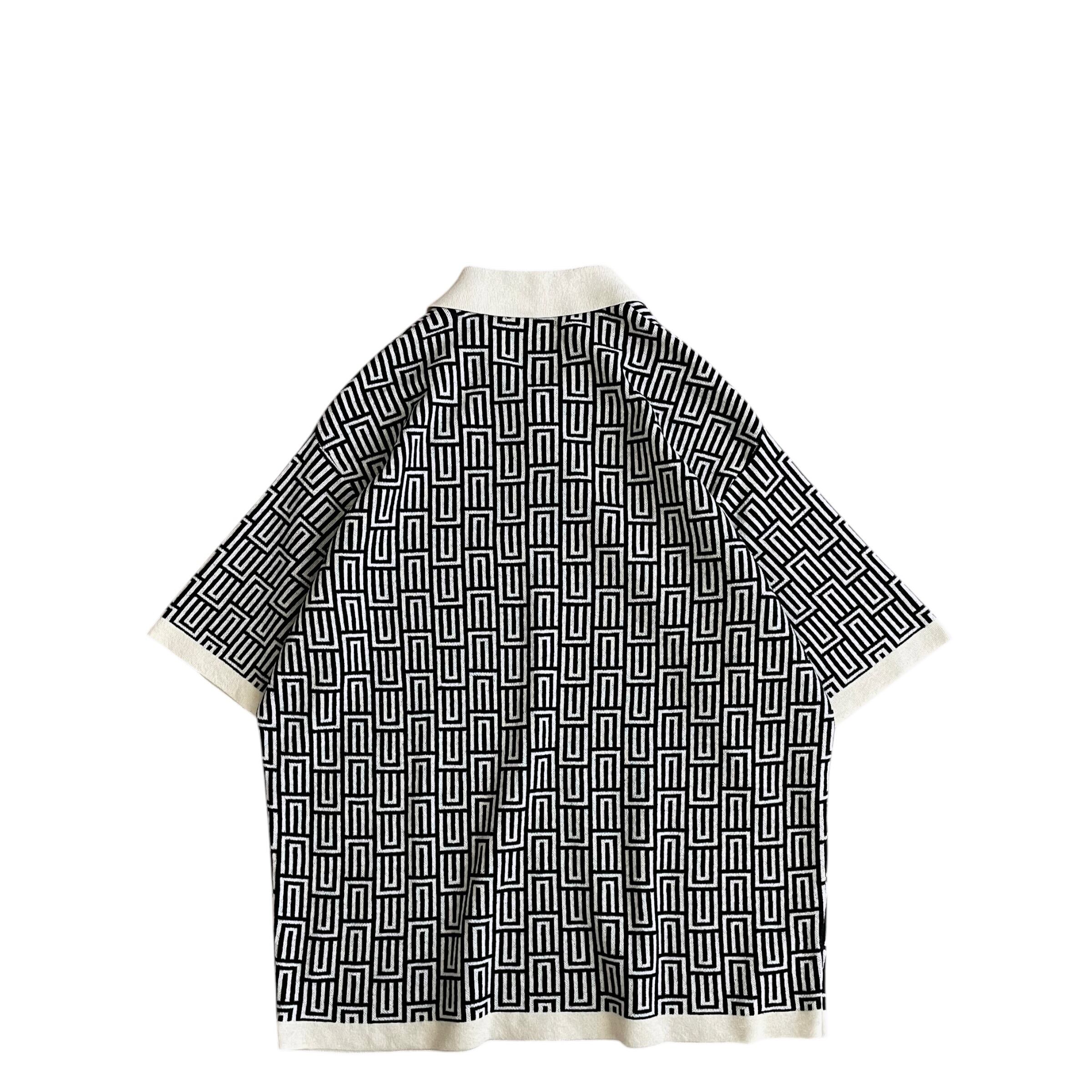 USED 00s 総柄 ジャガードニット ポロシャツ 半袖 幾何学柄
