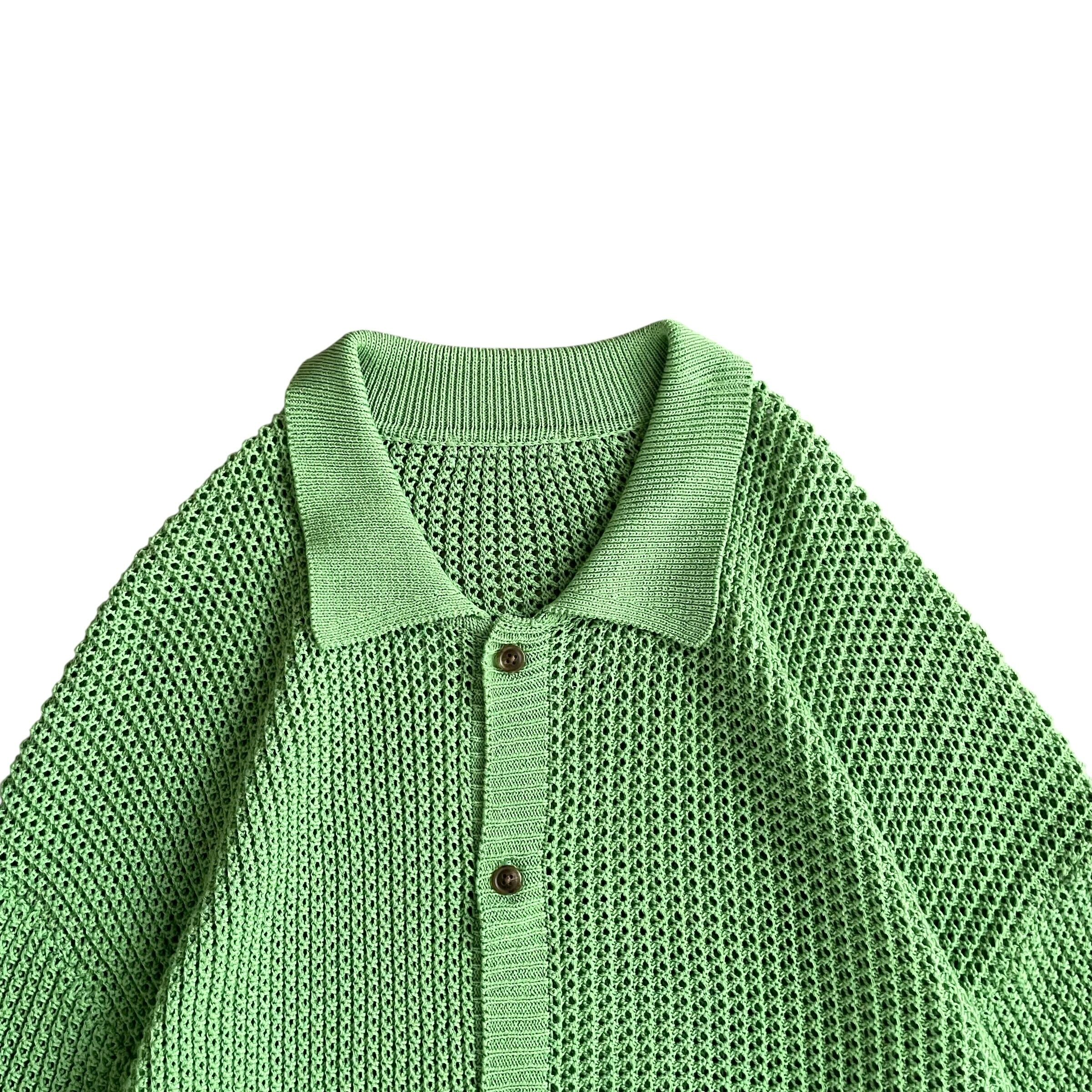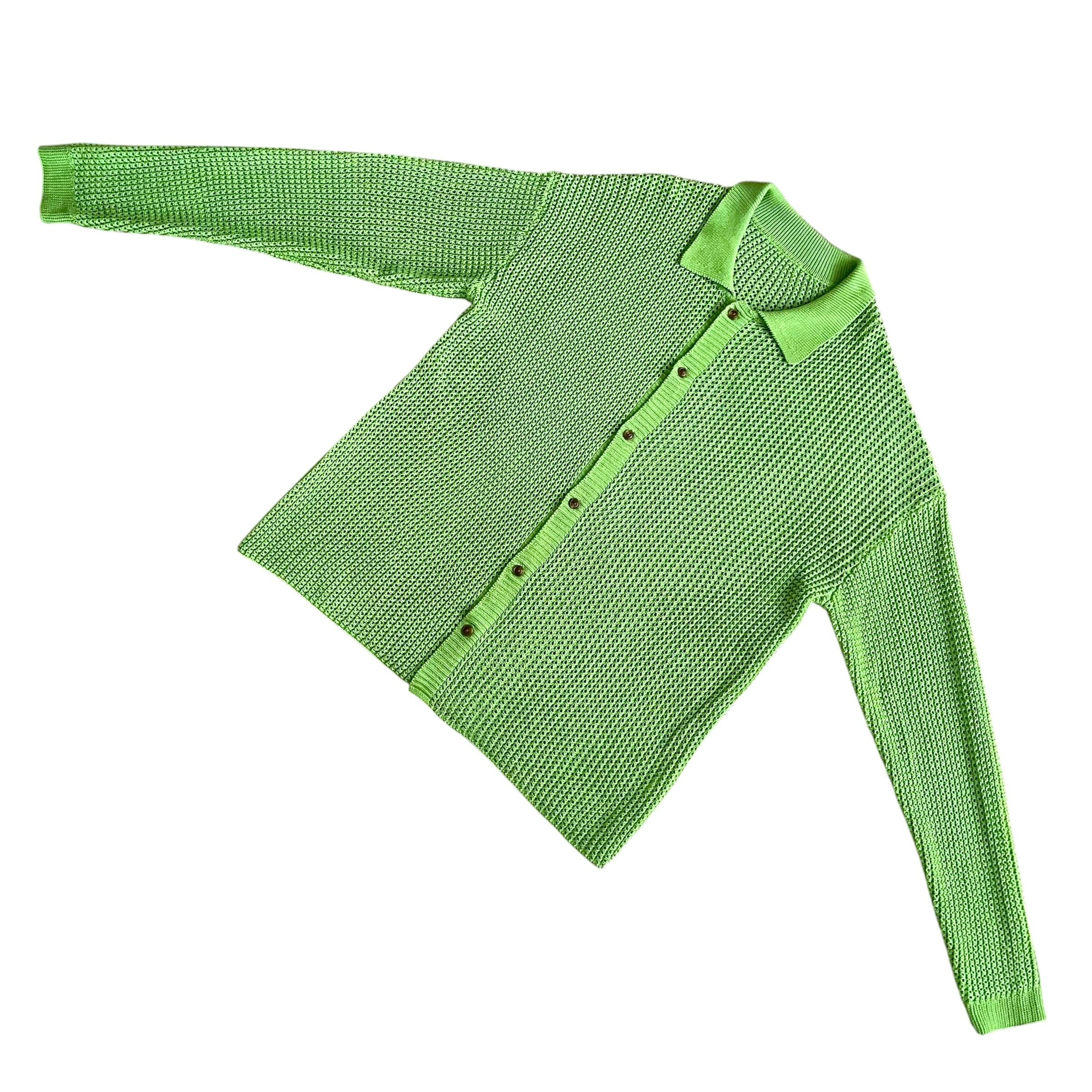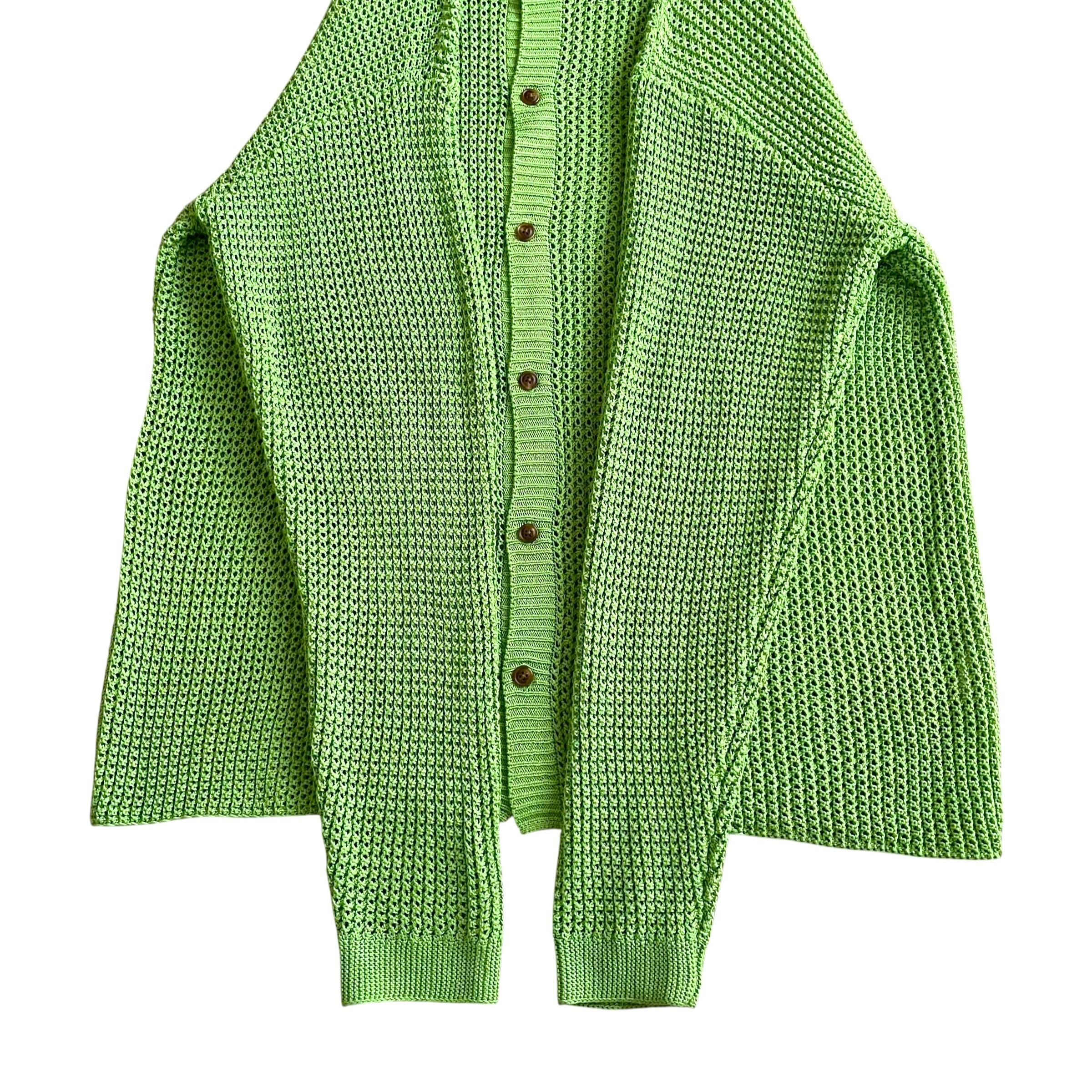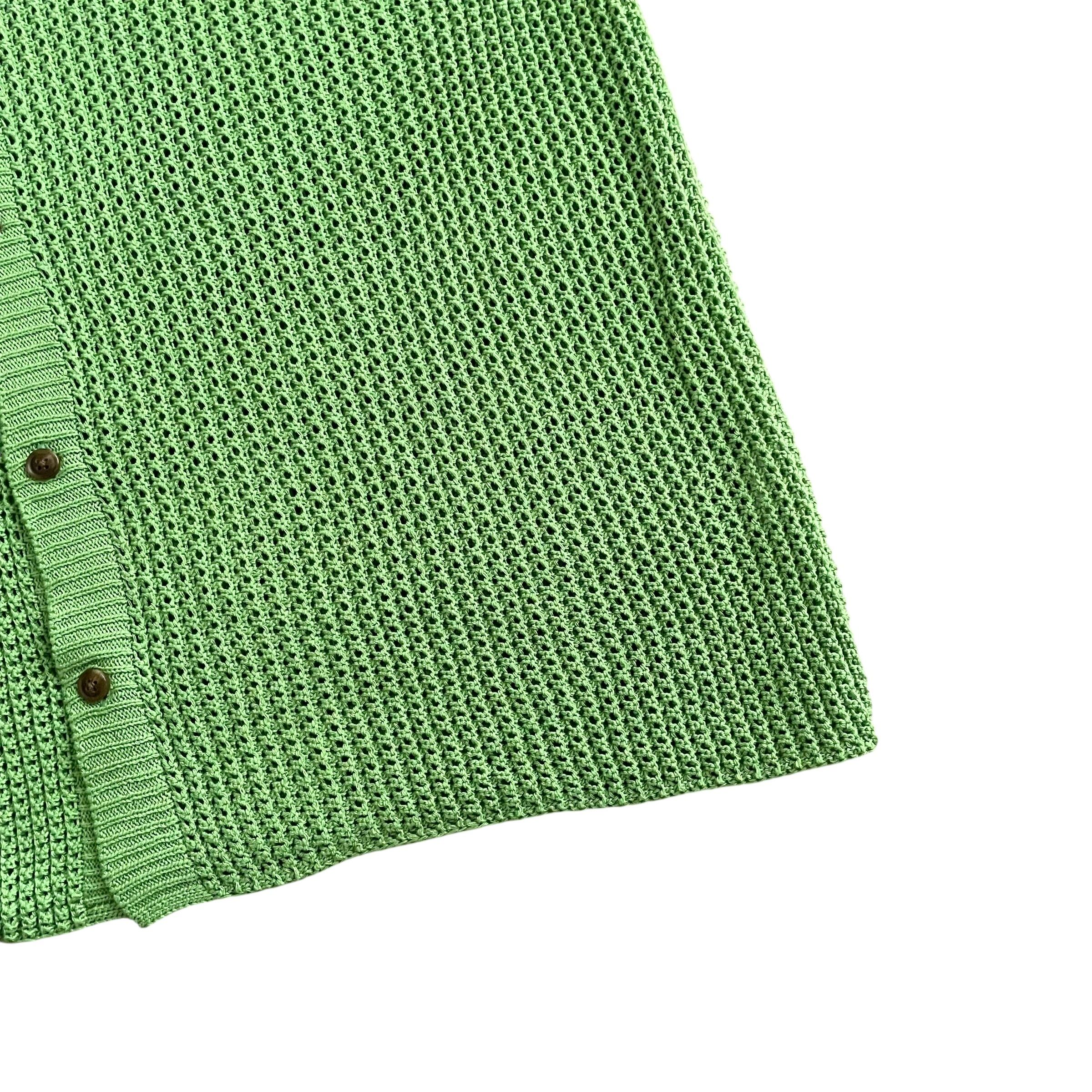 USED 00s 透かし編み 襟付き コットンニット カーディガン GRN