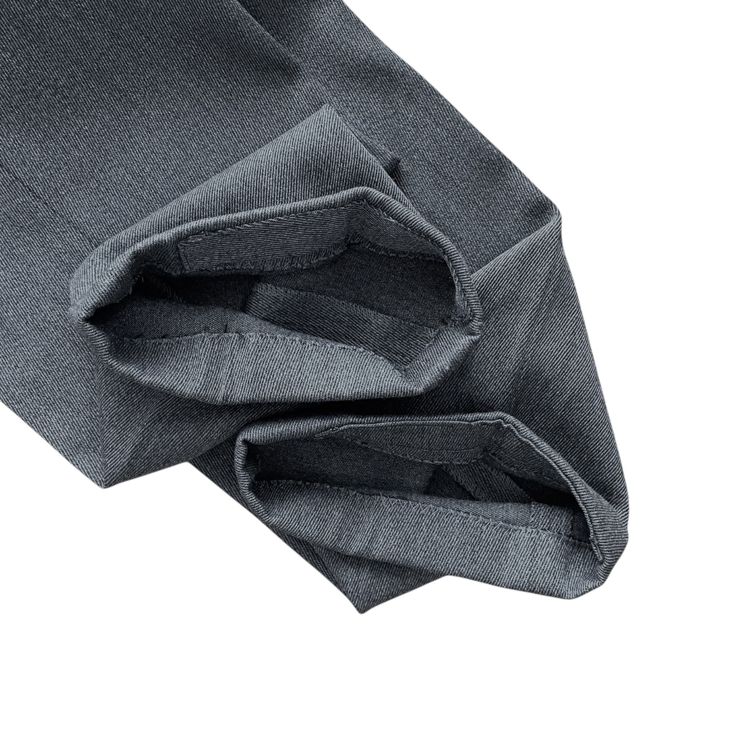 丈感は腰で穿いて裾に5cm程度折り返しが出来るサイズ感です。(※元々止められている折り返しを折った状態のまま折り返しています)