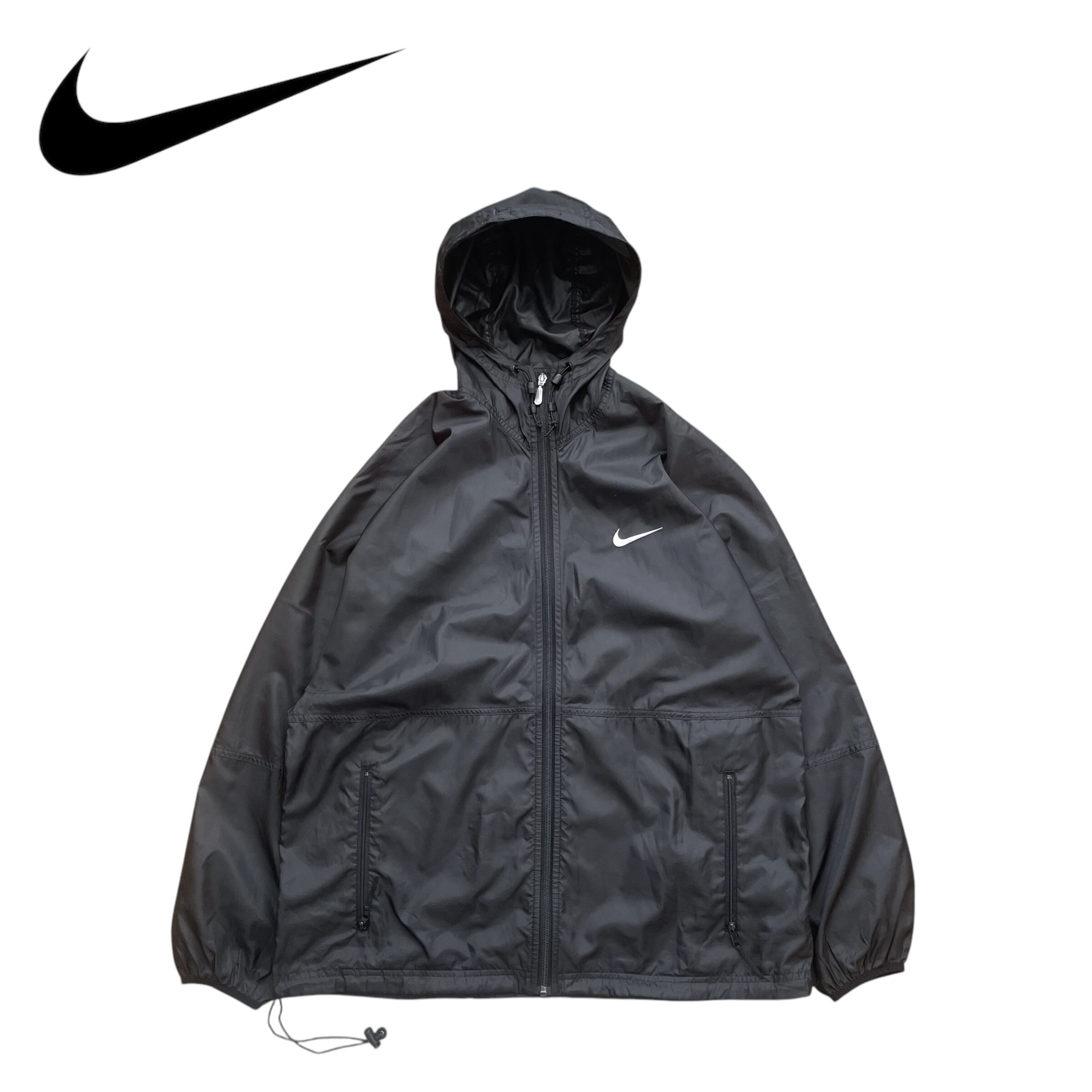 NIKEナイキ 90s 白タグ フード付きJKT ドローコード ナイロン BLK